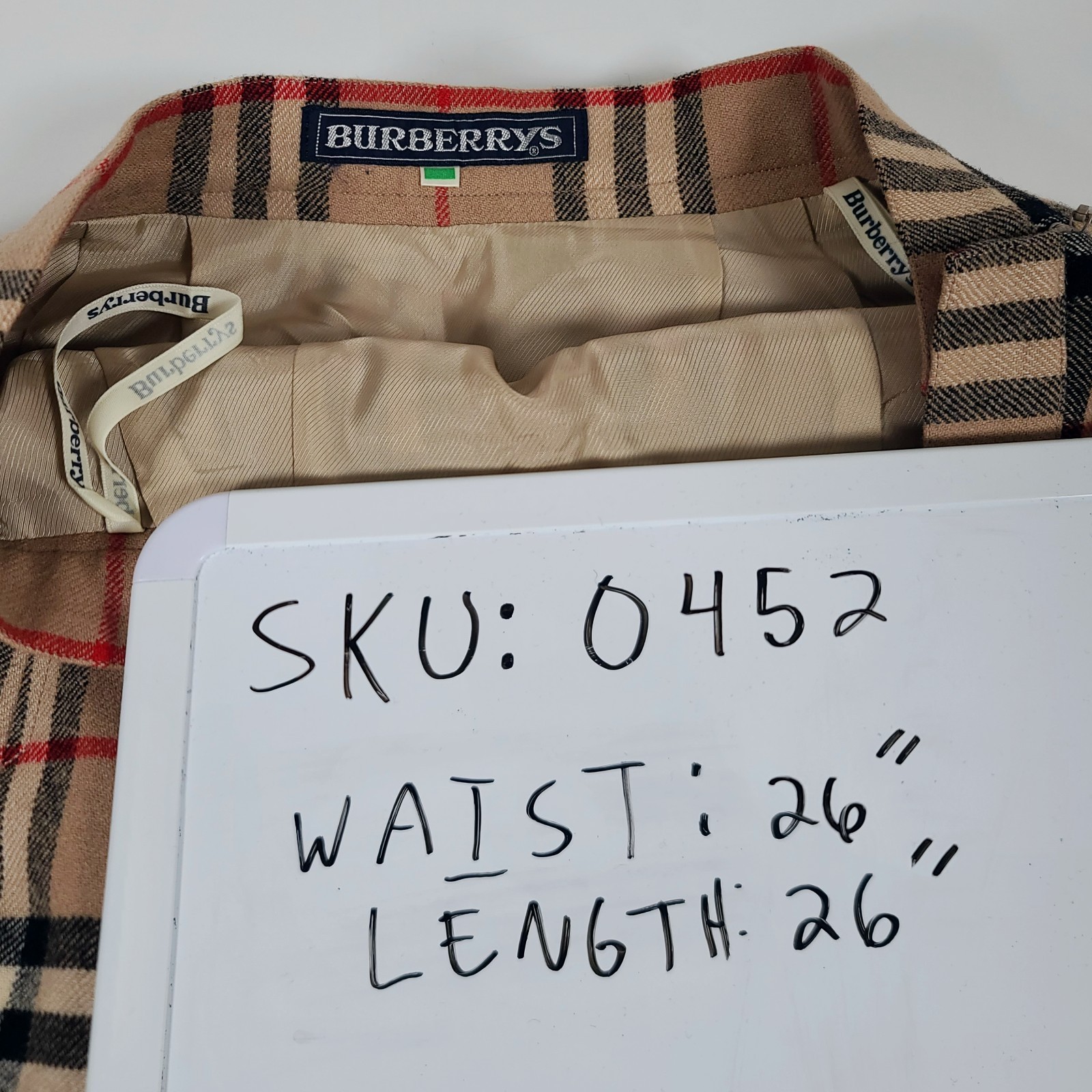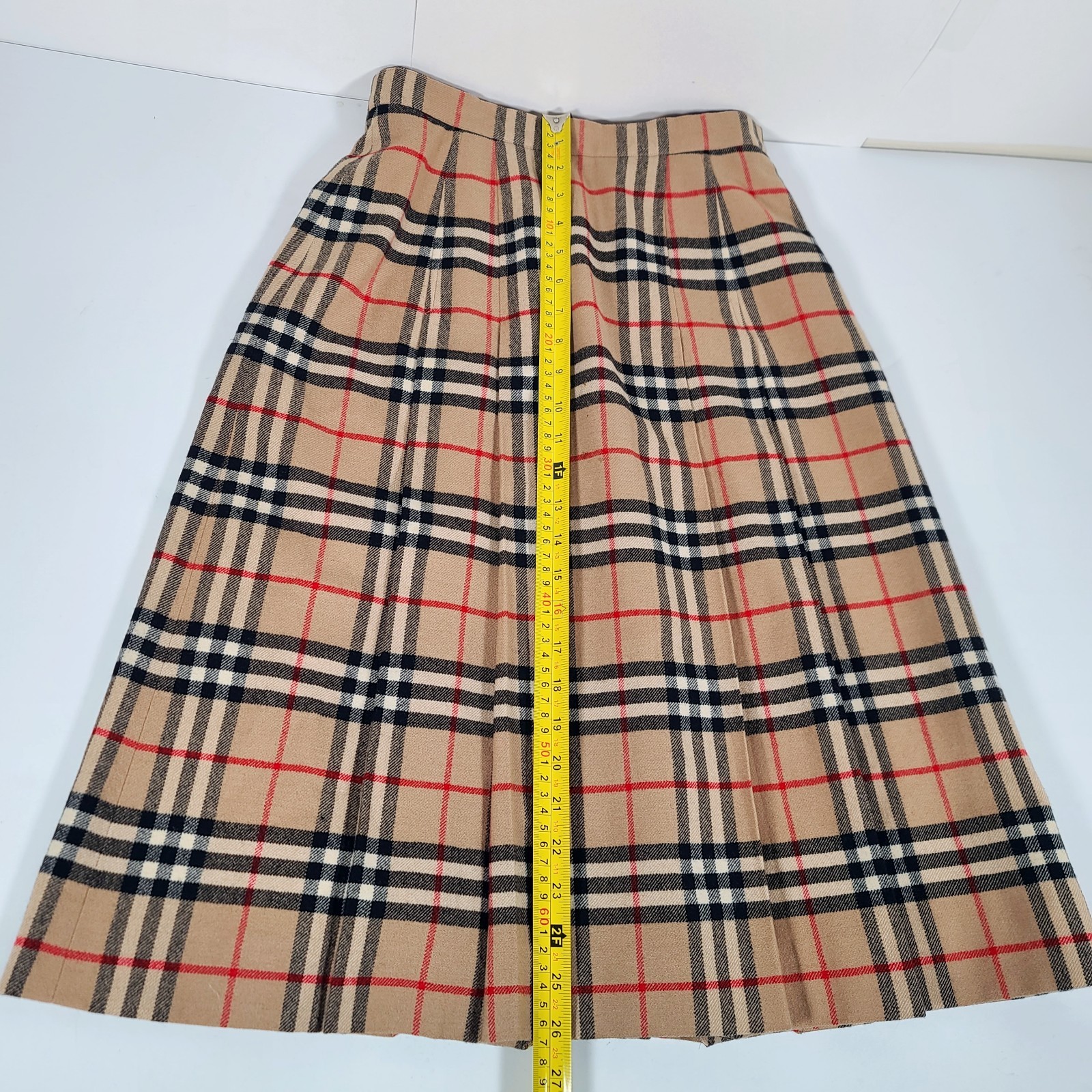 Vintage Burberry Skirt Women 4 Small Beige Midi Nova Check Wool Pleats 80s Japan