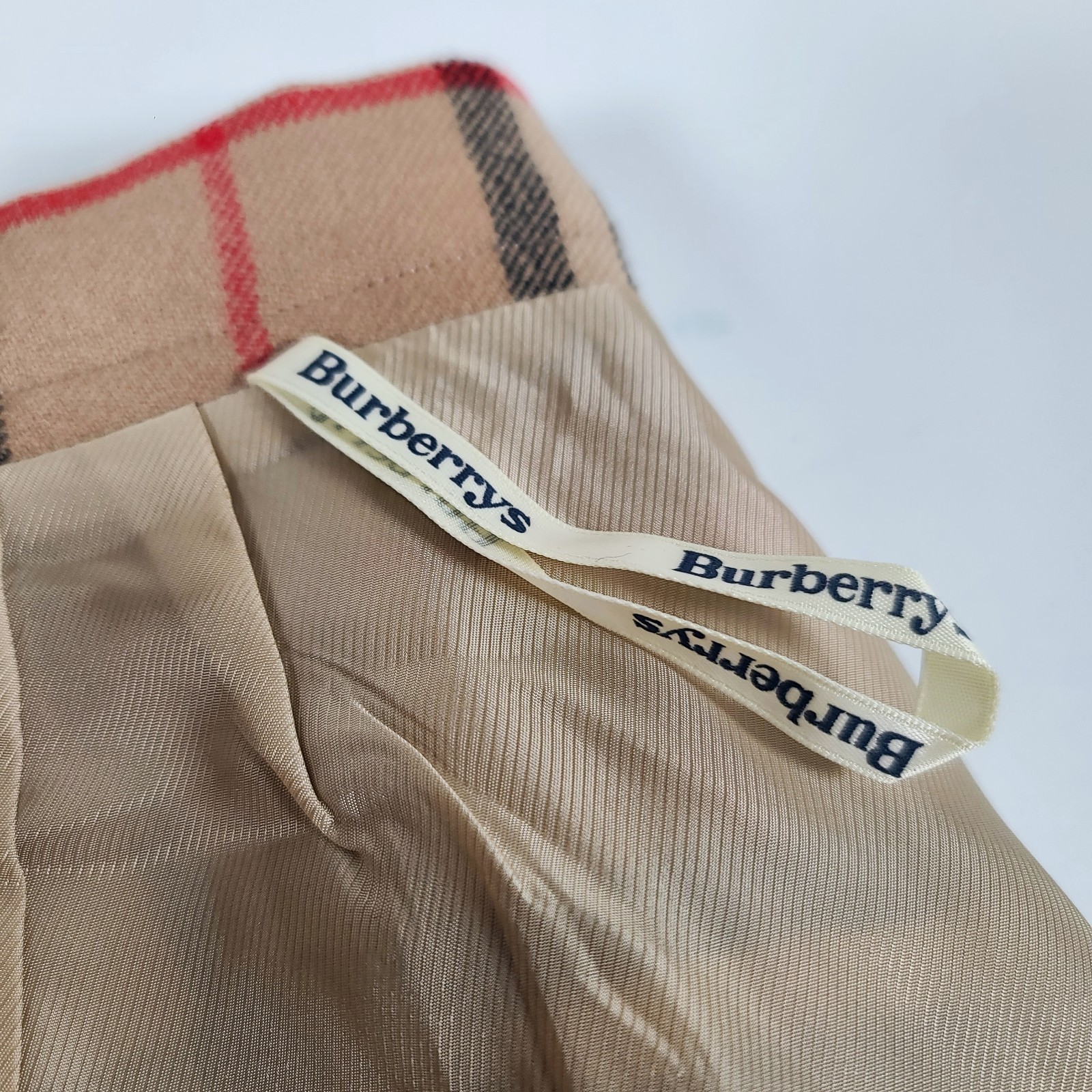 как выглядит Vintage Burberry Skirt Women 4 Small Beige Midi Nova Check Wool Pleats 80s Japan фото