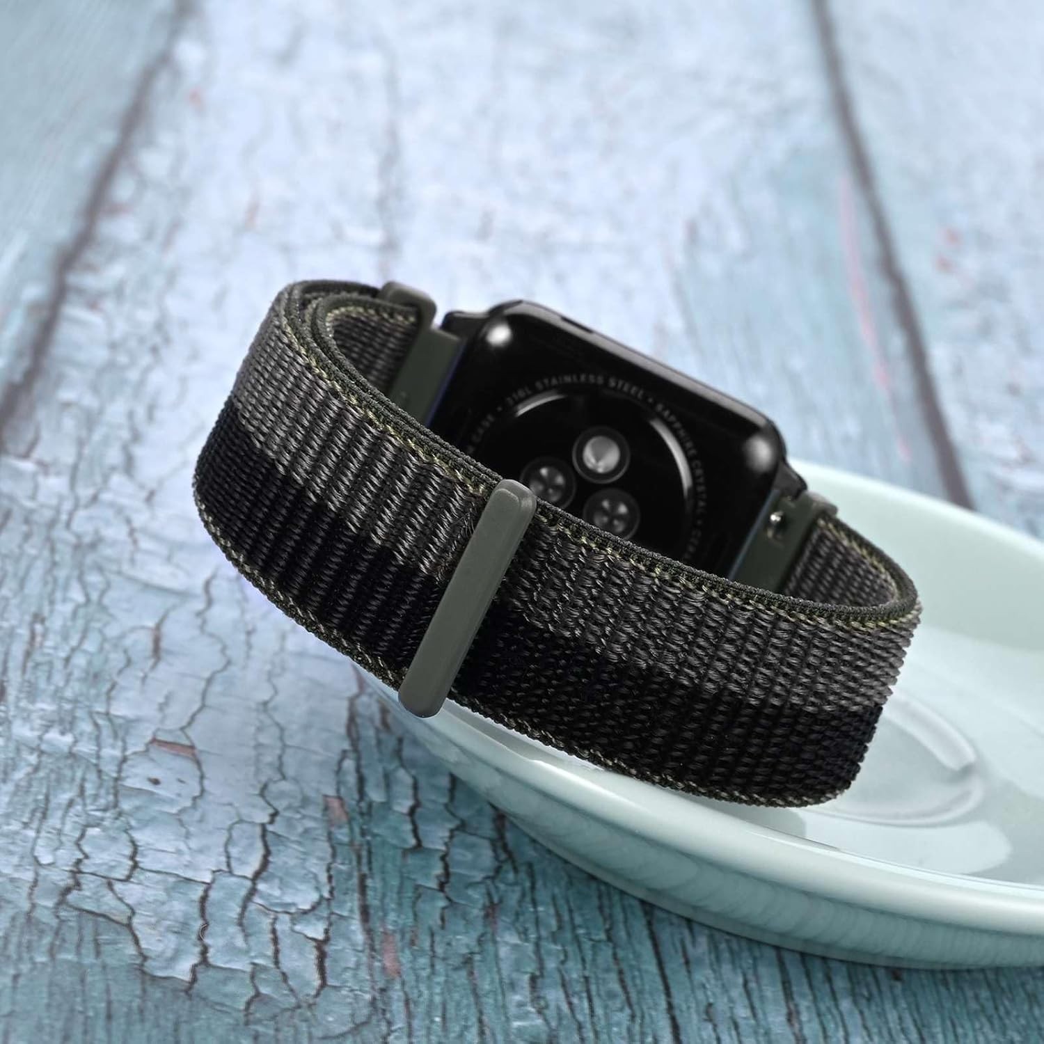 как выглядит 20mm Adjustable Nylon Watch Band, Quick Release Sport Loop Strap Black/Grey фото
