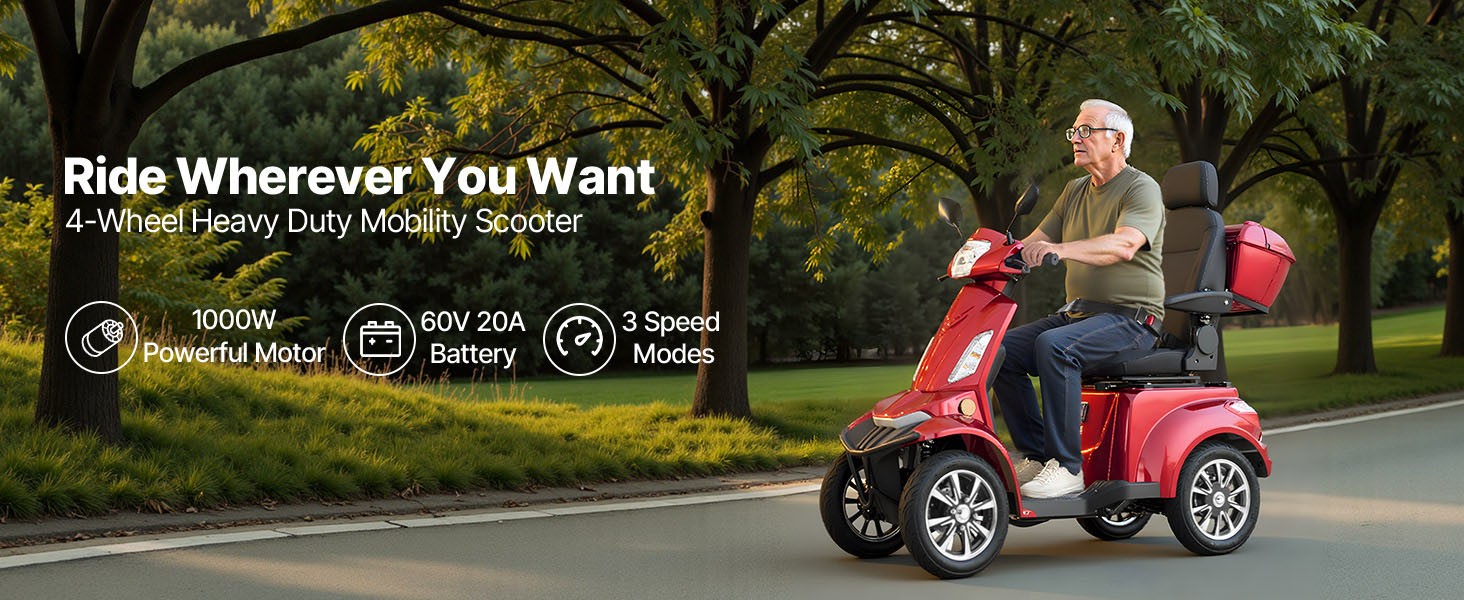 Uimoso Heavy-Duty 4-Wheel Mobility Scooter 21.5 Miles Range 3-Speed, 500lbs Load