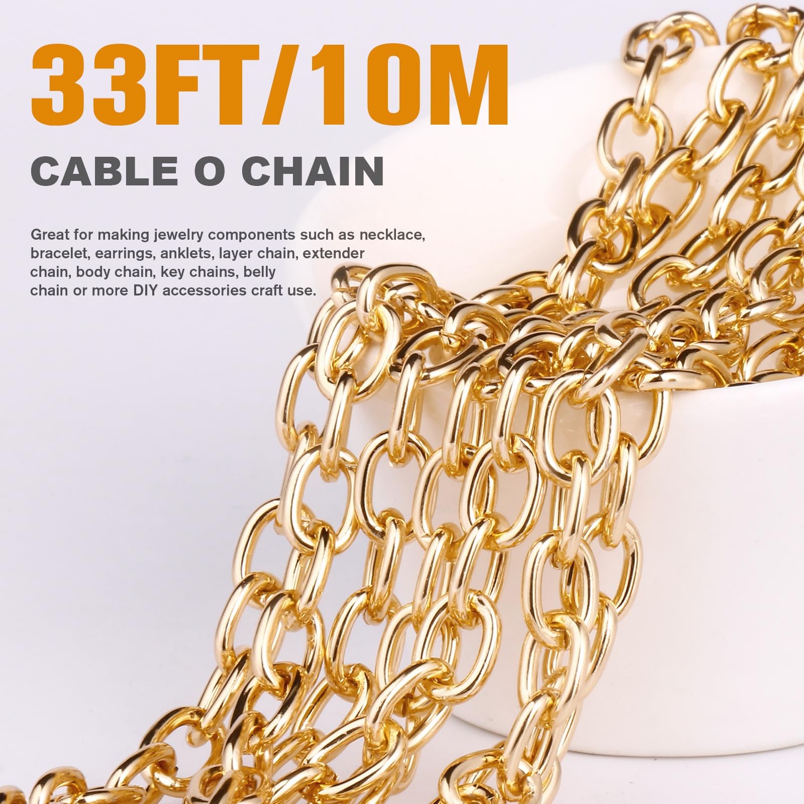 33 Feet Gold Rolo Cable Chains Roll, 5 MM Gold Plated Aluminium Oval Cable O ...