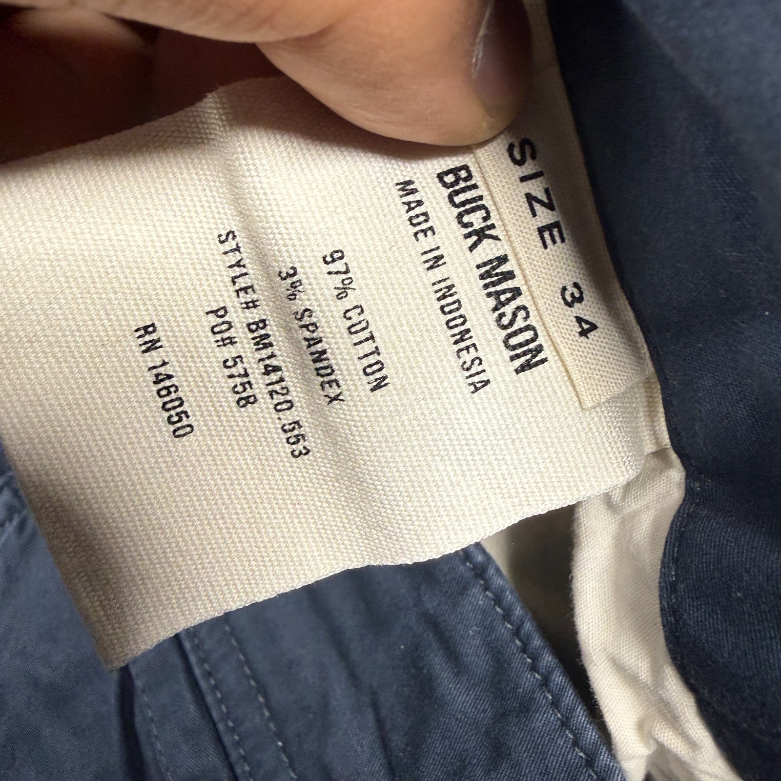 Buck Mason Chino Mens 34 Navy Blue Straight Leg Cotton Blend Twill Casual Pants