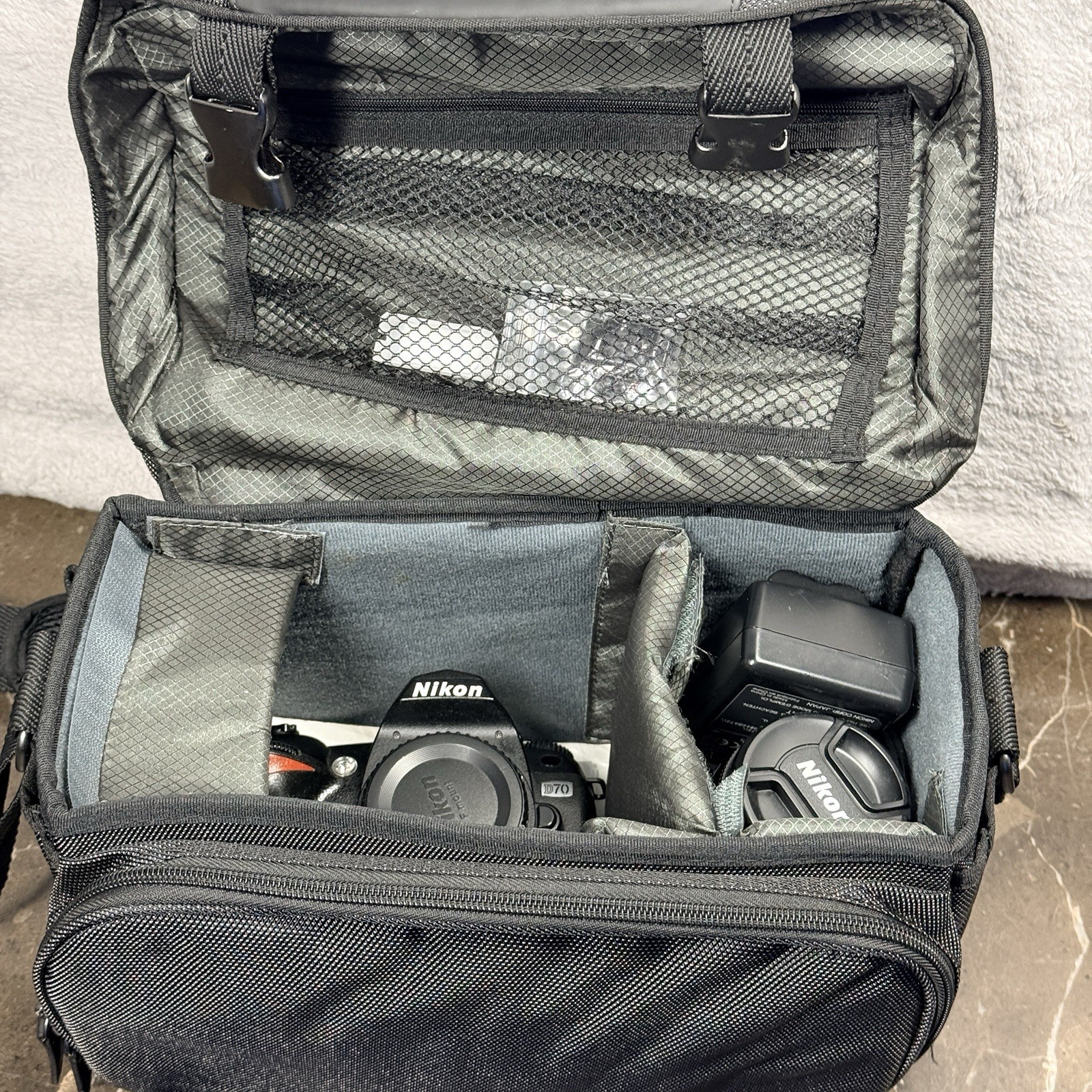 как выглядит Nikon D70 Digital SLR Camera, Battery Charger, books, SD Card Carrying Bag фото