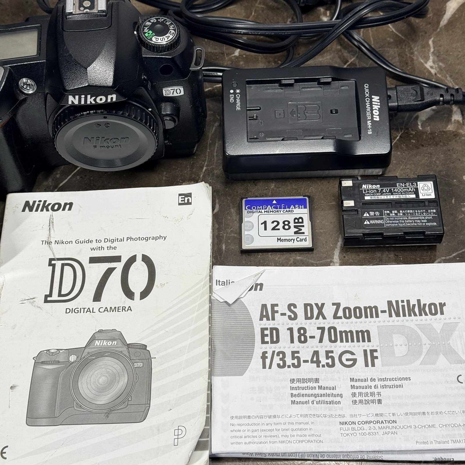 Nikon D70 Digital SLR Camera, Battery Charger, books, SD Card Carrying Bag