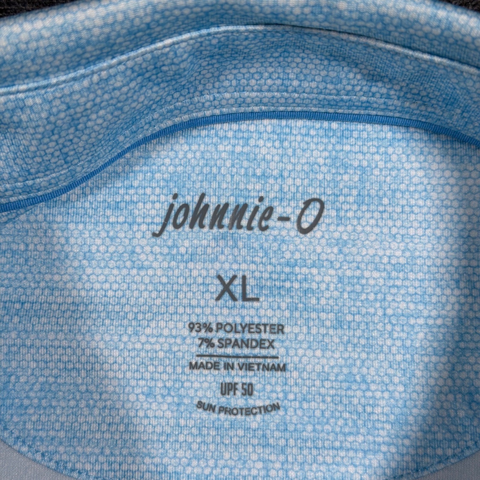 johnnie-O Polo Shirt Mens XL Blue Geometric Golf Performance UPF 50 Wicking