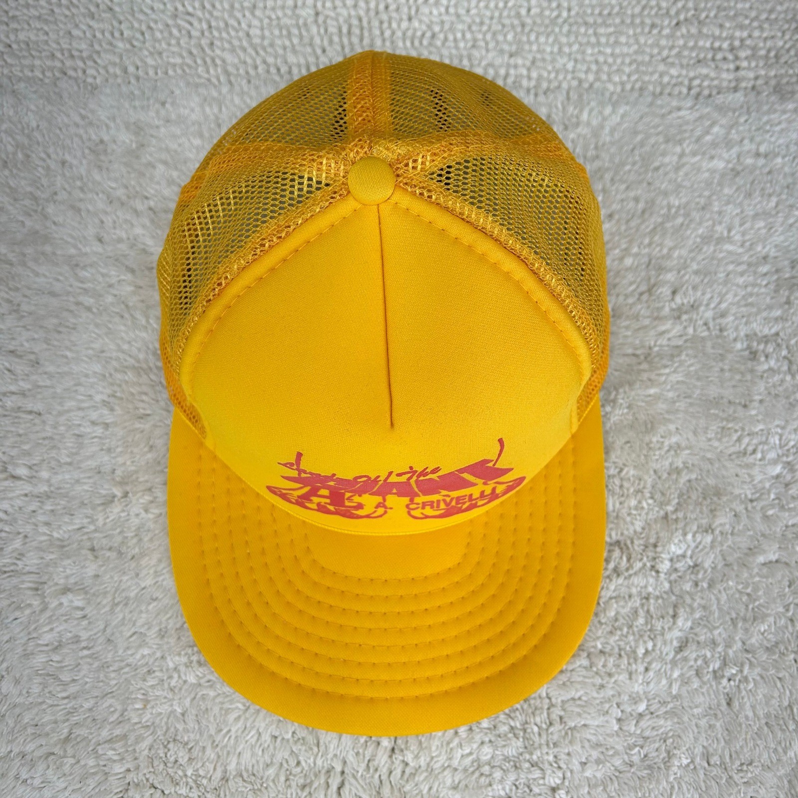 как выглядит Vintage Land Of The Giant Mesh Snapback Trucker Hat OSFA Workwear Cap Yellow фото