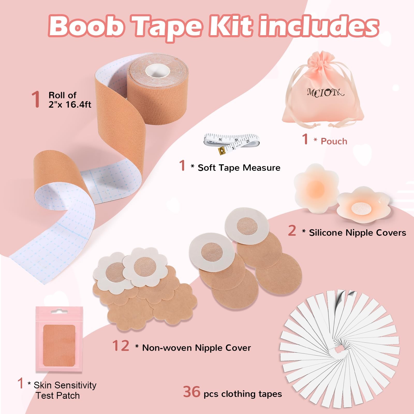 Mciotk Boob Tape Kit - Boobytape for Breast Lift w 1 Body Tape, 2 2 in, Beige