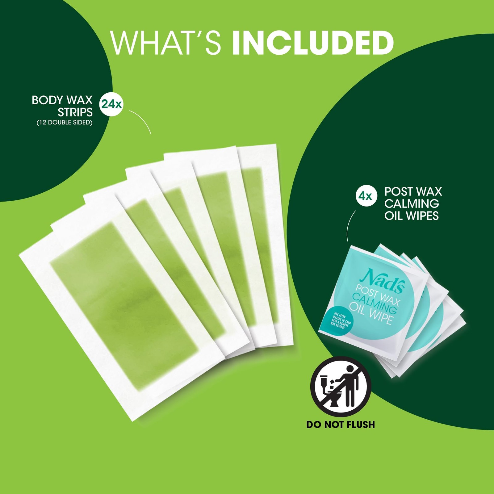 Nad's Body Wax Strips Hair Removal For 24 Count Pack of 1 , GREEN,WHITE