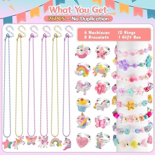 Girls Jewelry Set for Ages 3-8, Princess Dress Up Accessories, Unicorn Gifts