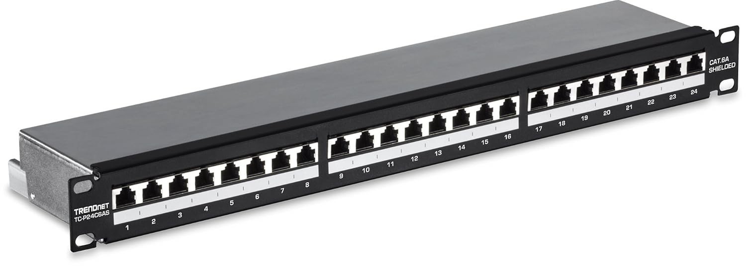24-Port Cat6A Shielded Patch Panel, 1U 19 Metal Housing, 10G Ready, Cat5e,Ca...