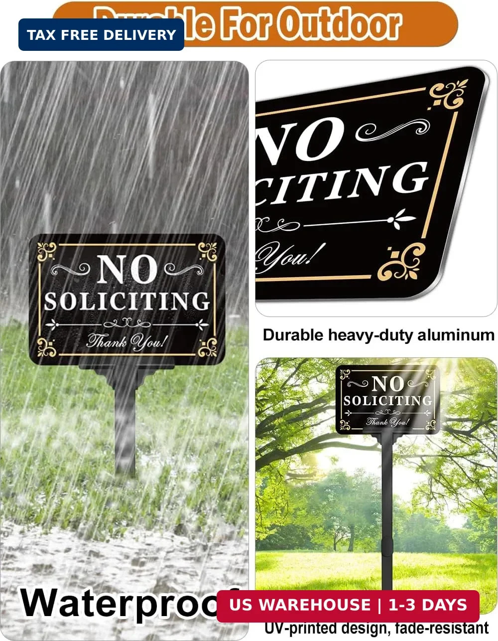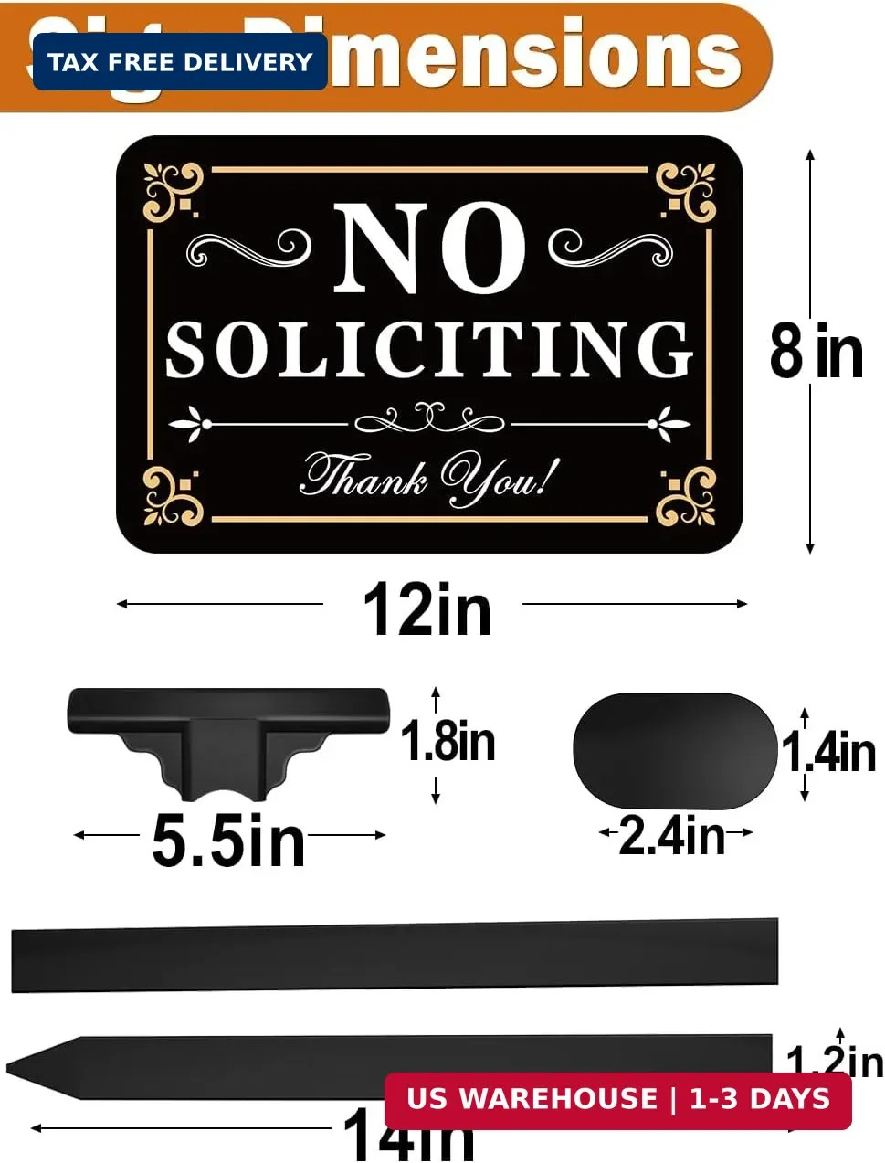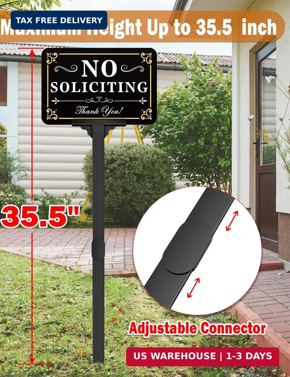 No Soliciting Sign for House with Stake - Adjustable Height - 12 x 8 Inch/37 Inc