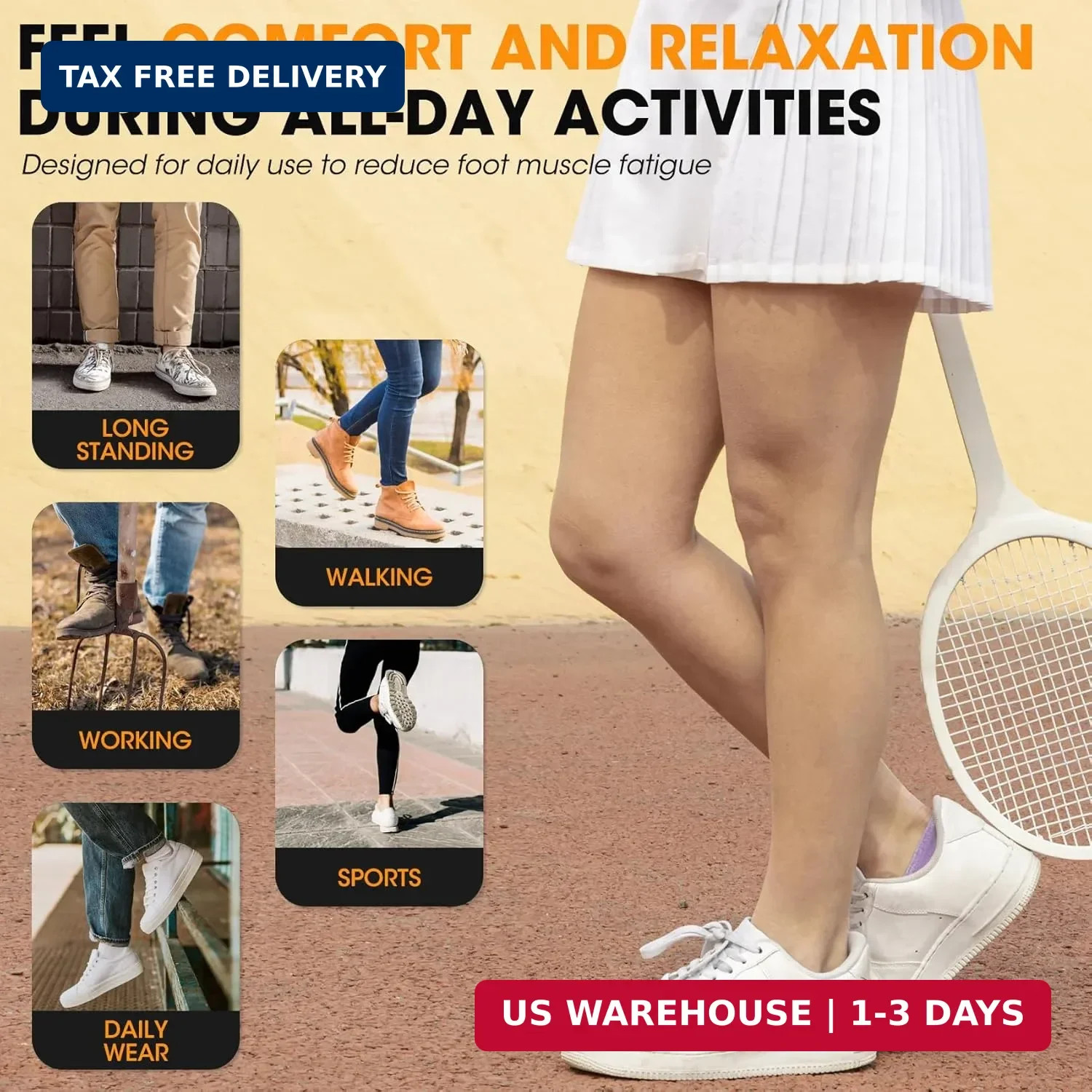Product Benefits: Foot Pain, Plantar Fasciitis, Pronation, Heel Pain, High Arch, Ac