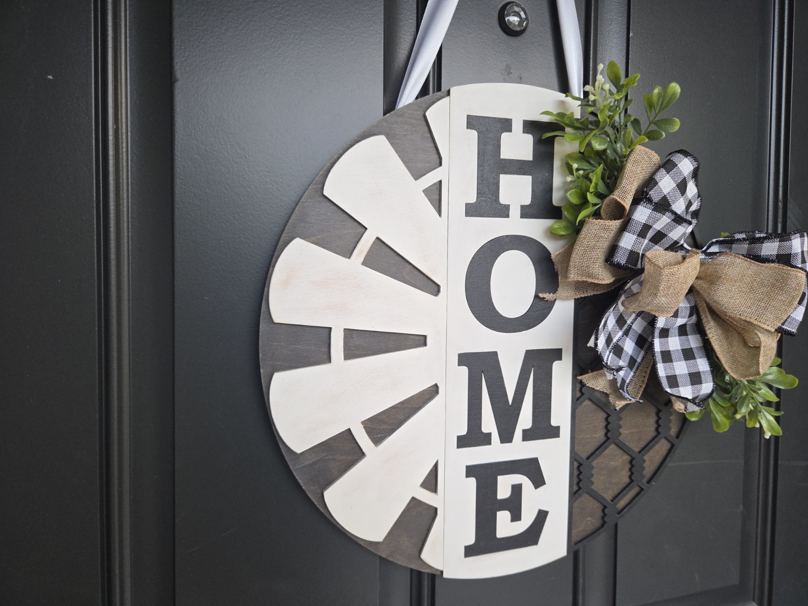 Farmhouse HOME Door Hanger 15 Round Wood Welcome Sign Front Door Decor