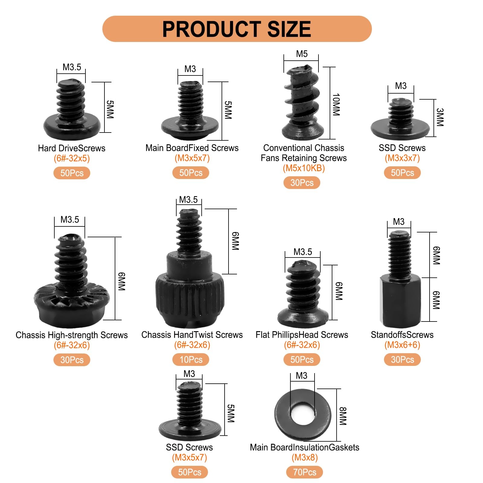 420PCS Computer Screw Kit, Motherboard Standoffs M2, M2.5, M3, M5, Black