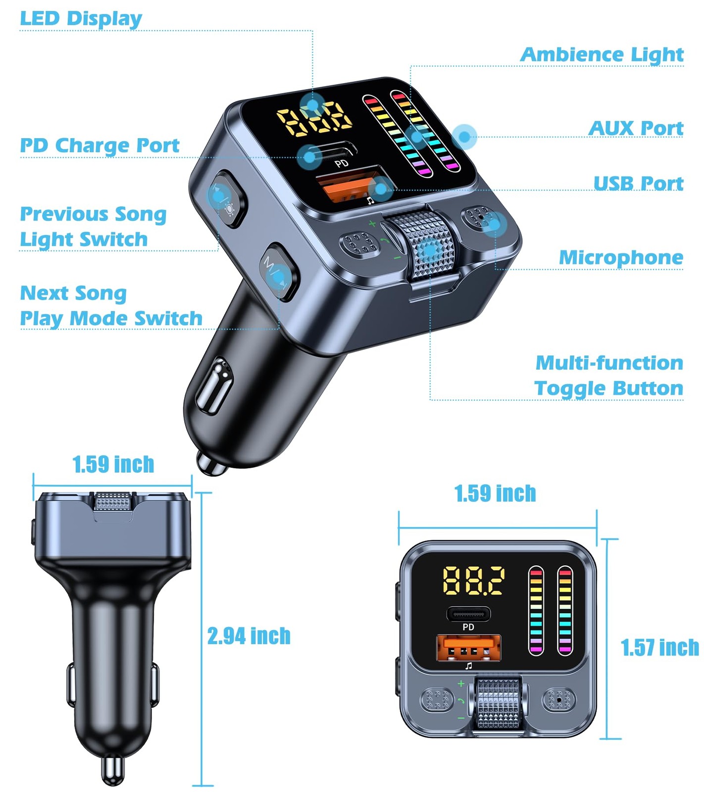 как выглядит Adaptador Bluetooth 5.3 para coche con transmisor FM y entrada AUX/USB de 42 W фото