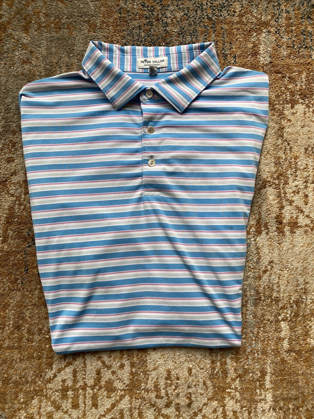 Peter Millar Summer Comfort Polo Shirt Mens XL Striped Golf Stretch EUC
