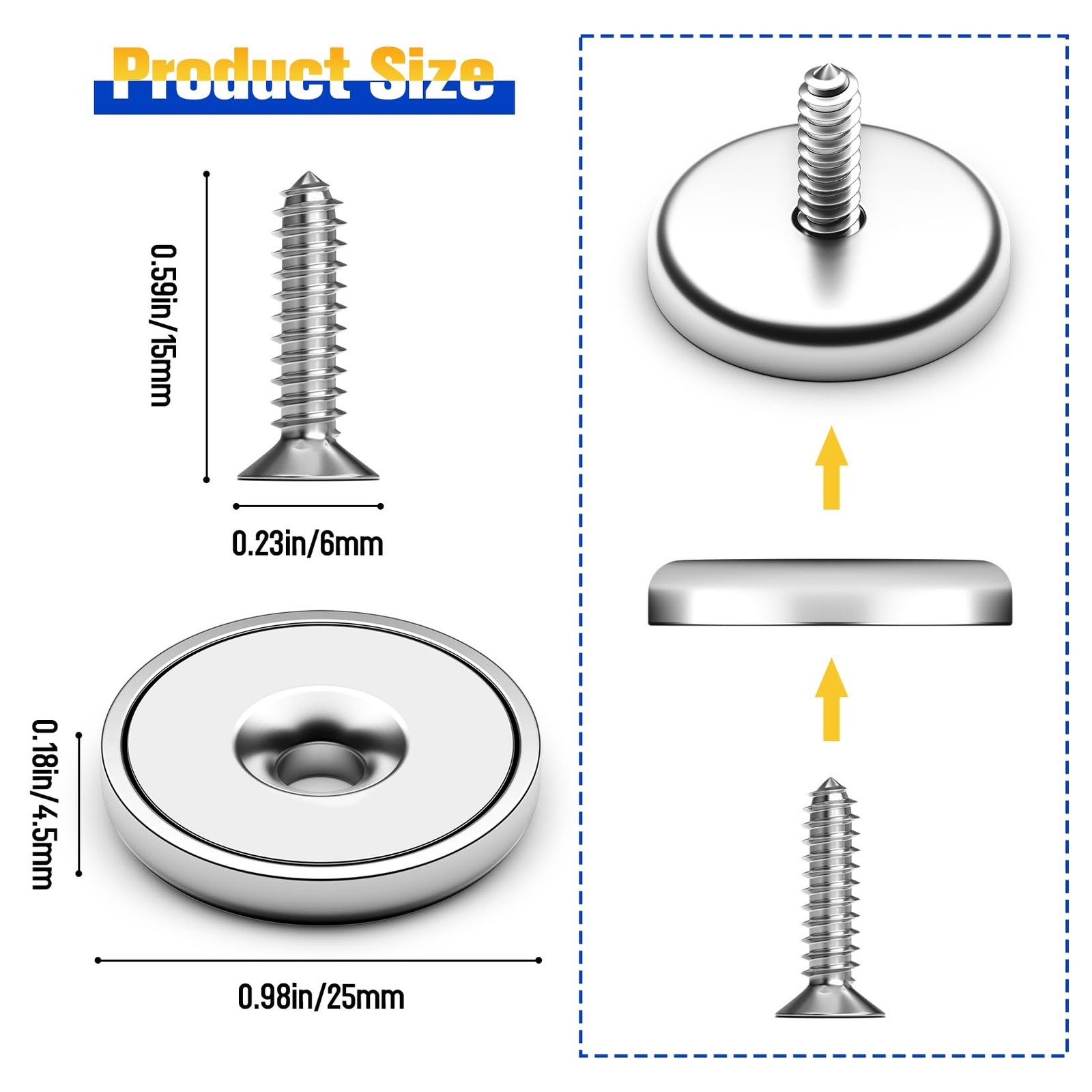 VNDUEEY Neodymium Cup Magnets, Strong Rare Earth 8 Pack 60LBS, Silver