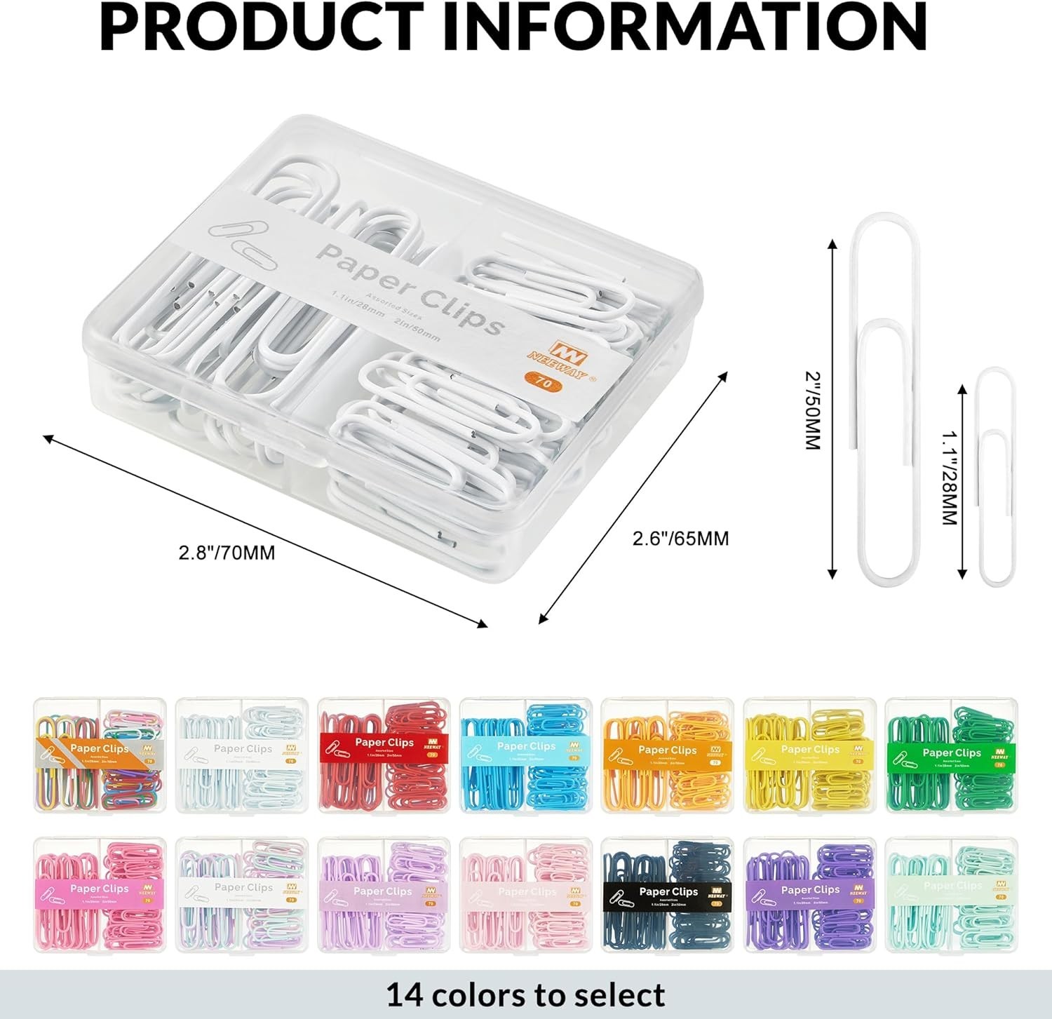 Colorful Paper Clips Assorted Sizes, Small and Large Paperclips, 210 Count, 3...