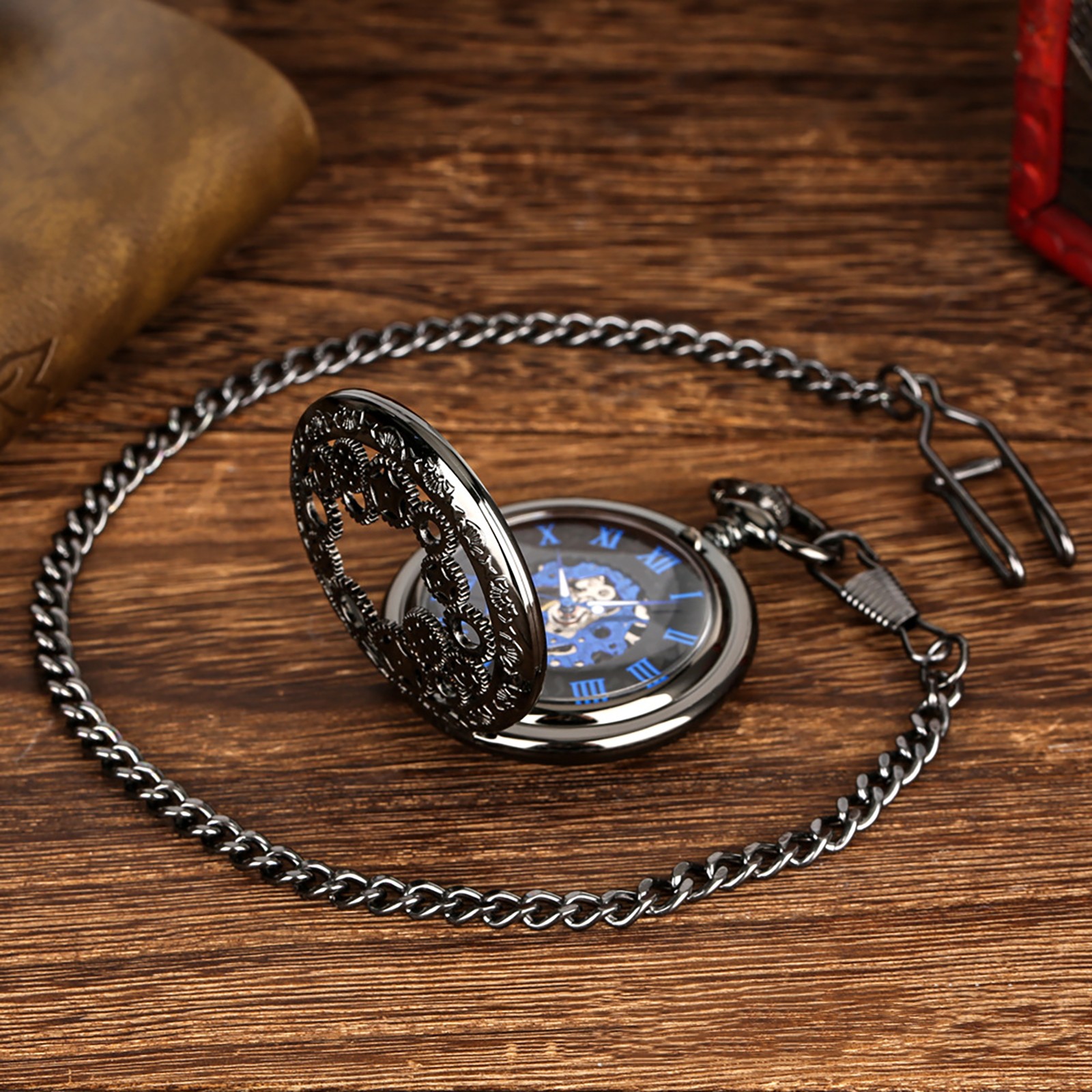 1 PC Vintage Steampunk Mens Pocket Watch Skeleton Luxury Pocket Watch with Chain