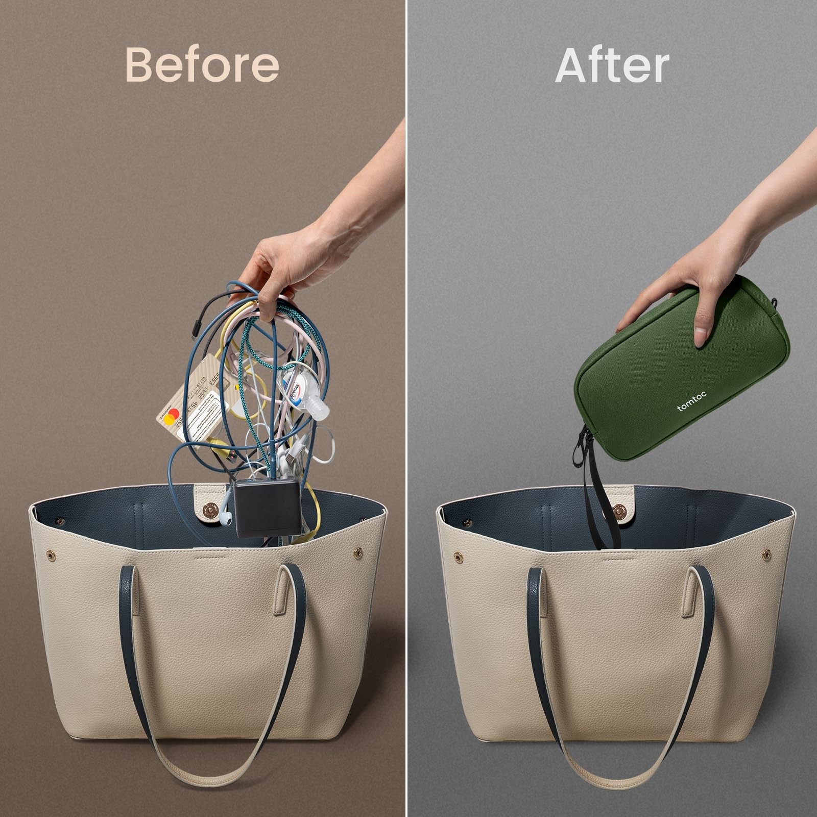 tomtoc Electronics Organizer Travel Case, Water Resistant Small, Green