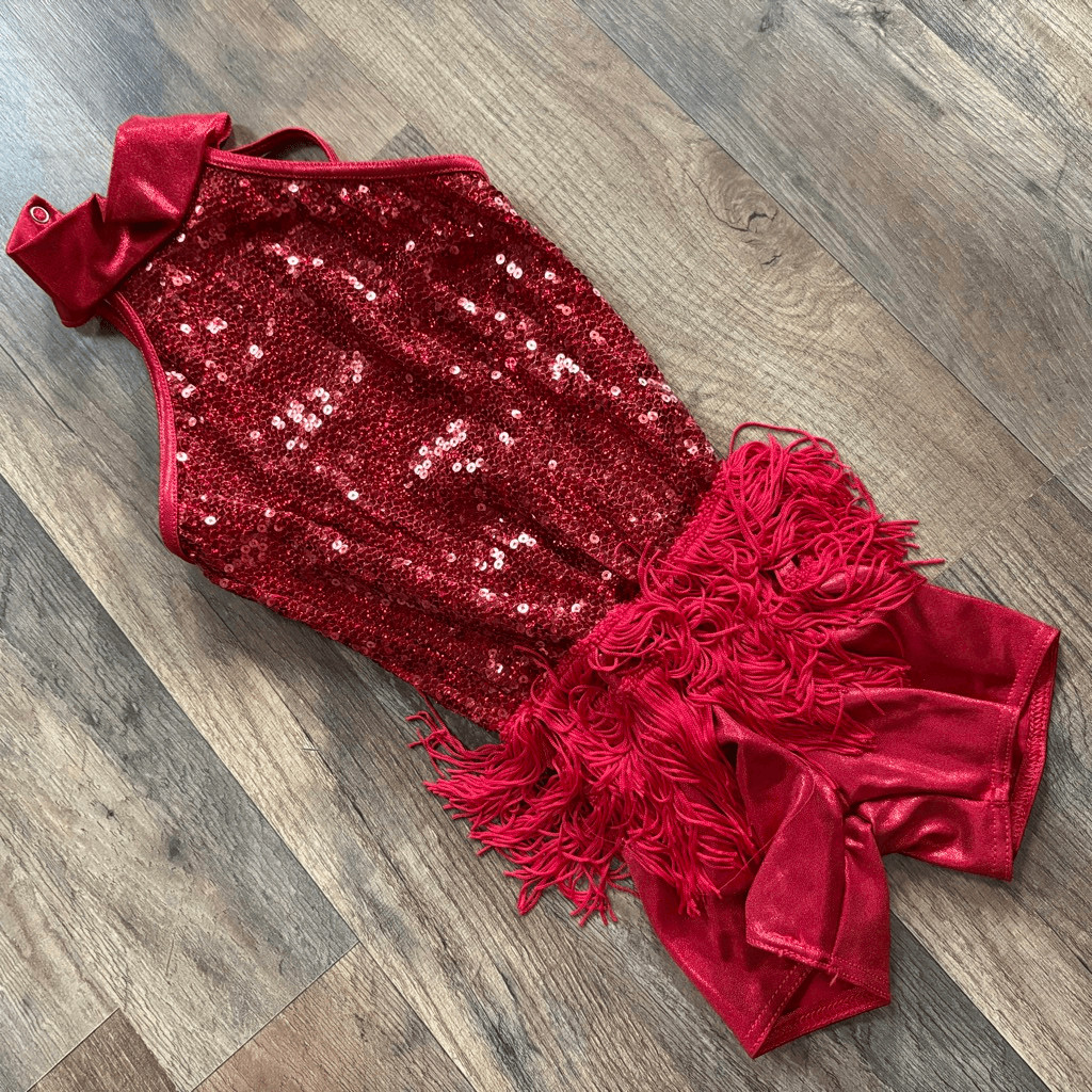 Weissman 9034 SC Red Fringe Sequin Romper Jazz Tap Acro Twirler Dance Costume
