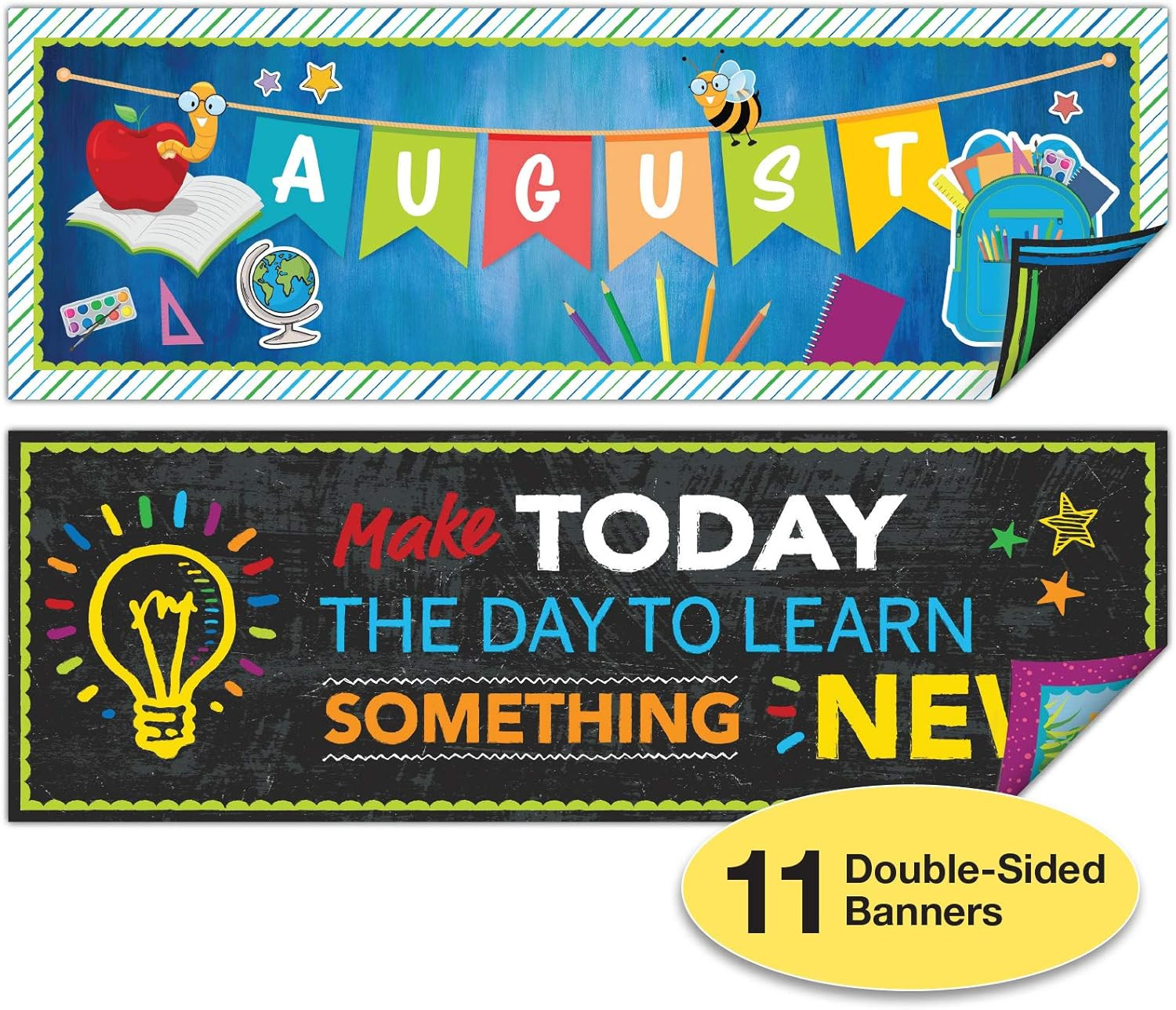 Set of 11 Motivational Classroom Banner Poster Decorations - Extra Large 13.5"X3