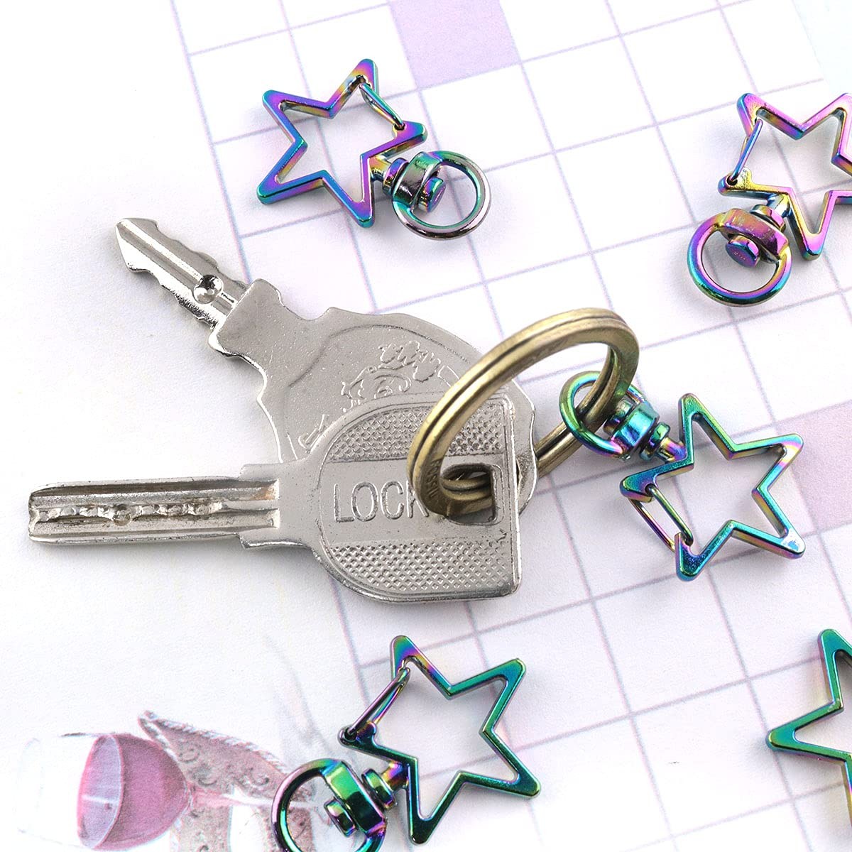 Star Snap Hook 10PCS Rainbow Color Star Shape Lobster Swivel Clasps Key Chain...