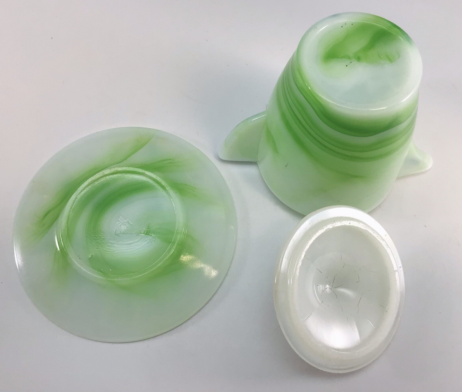 Akro Agate Teapot Pitcher with Lid Under Plate Childs Green Marbleized Vintage