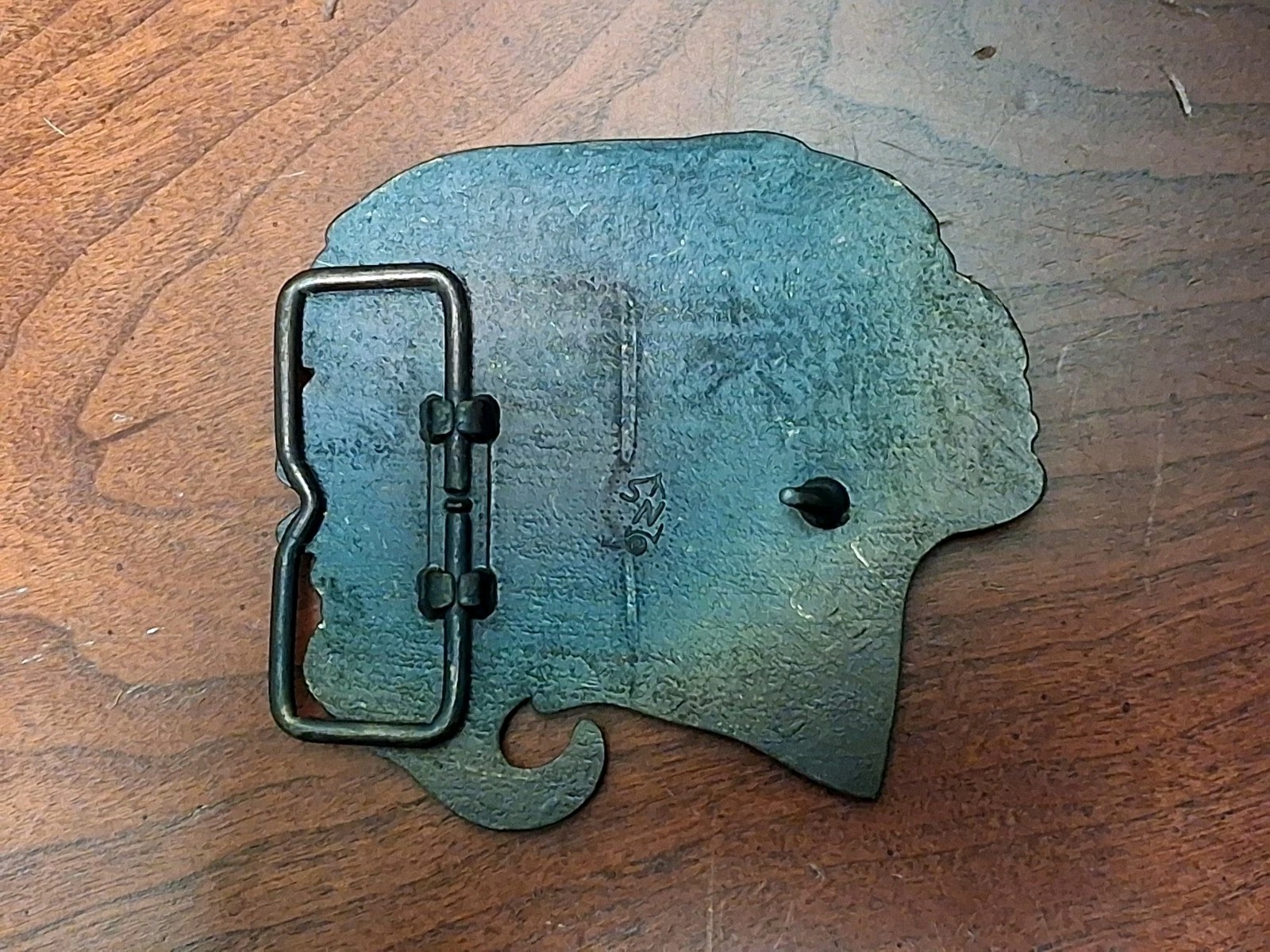 как выглядит Vintage Brass Belt Buckle Native American Chief Head Feather Headdress 3" фото