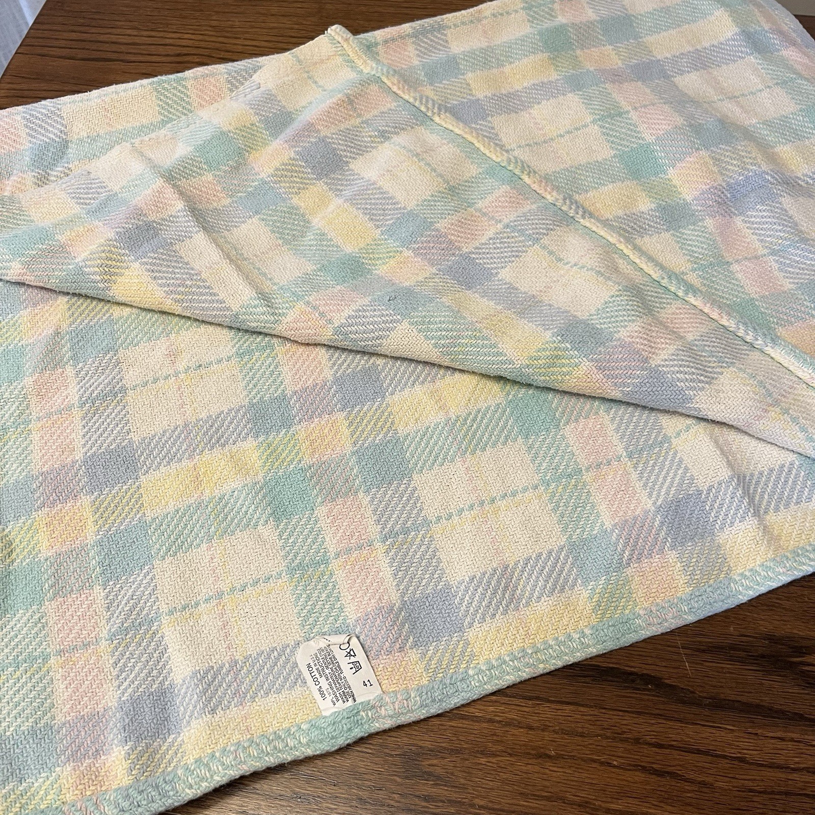 Vintage 80s Beacon Pastel Plaid Knit Waffle Weave Baby Blanket USA 100 Cotton