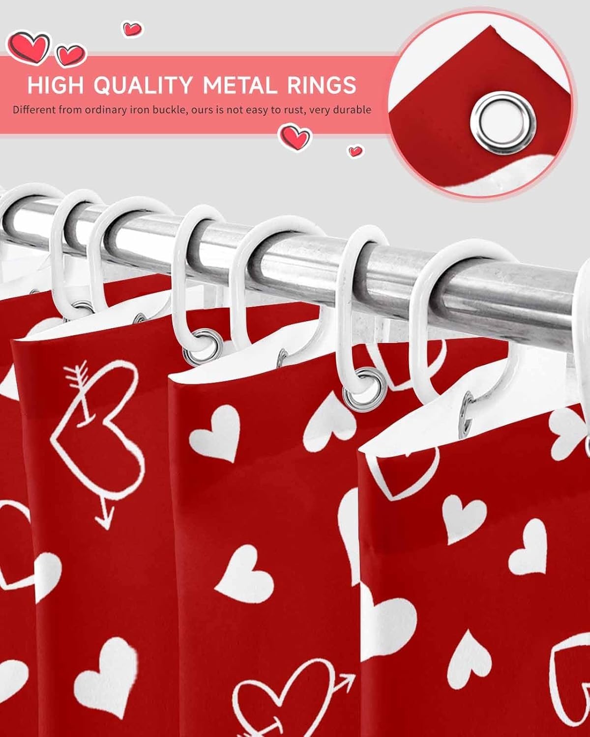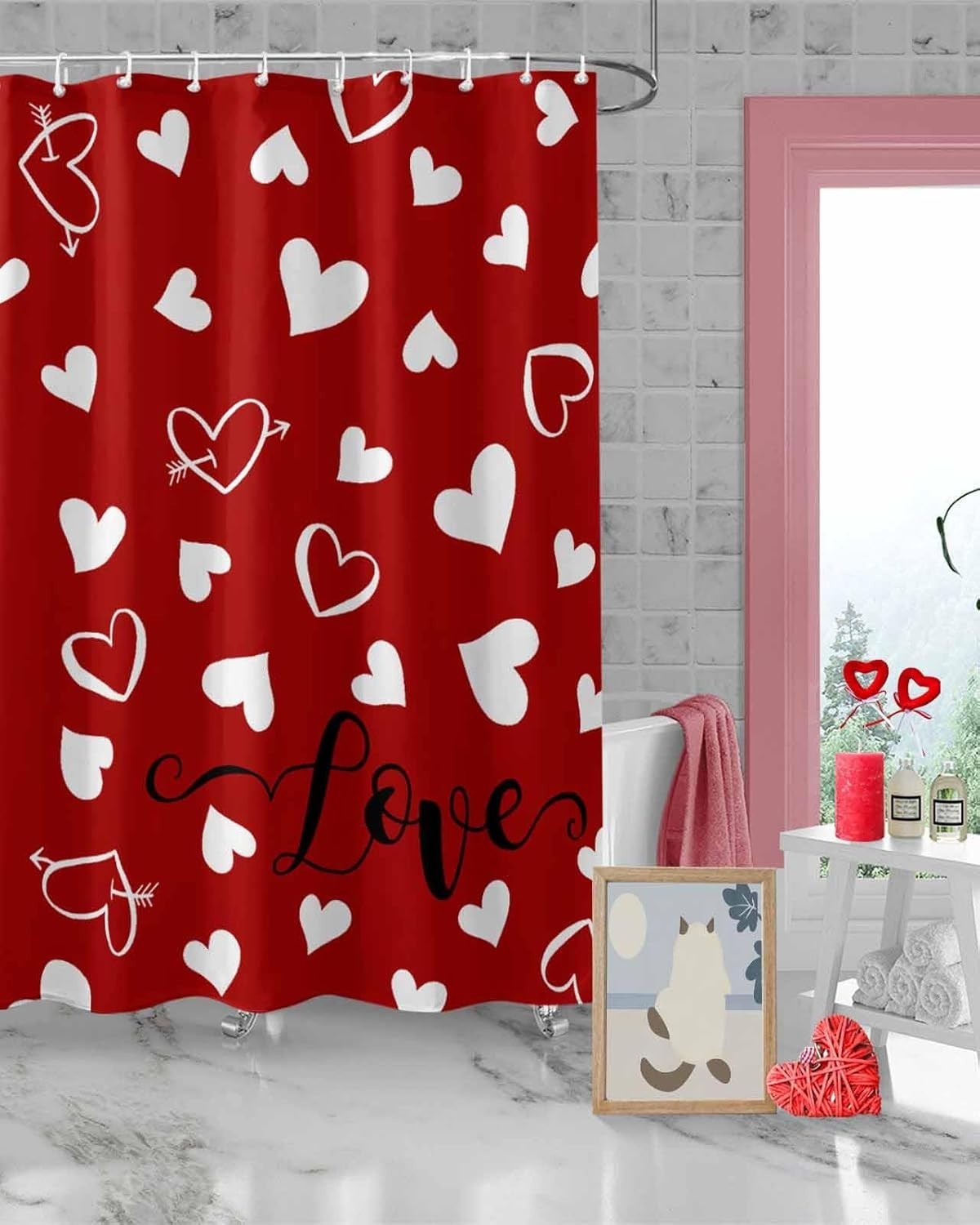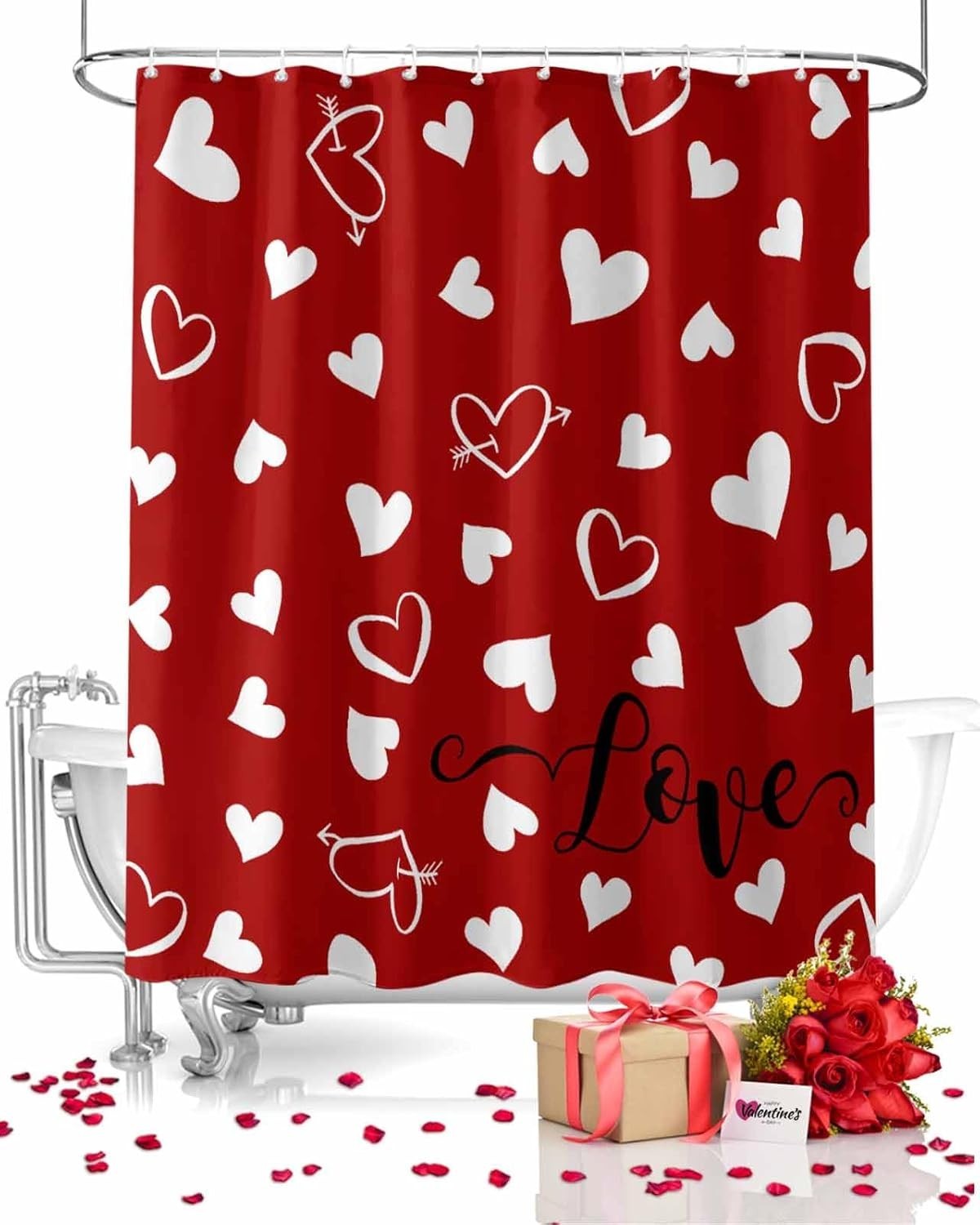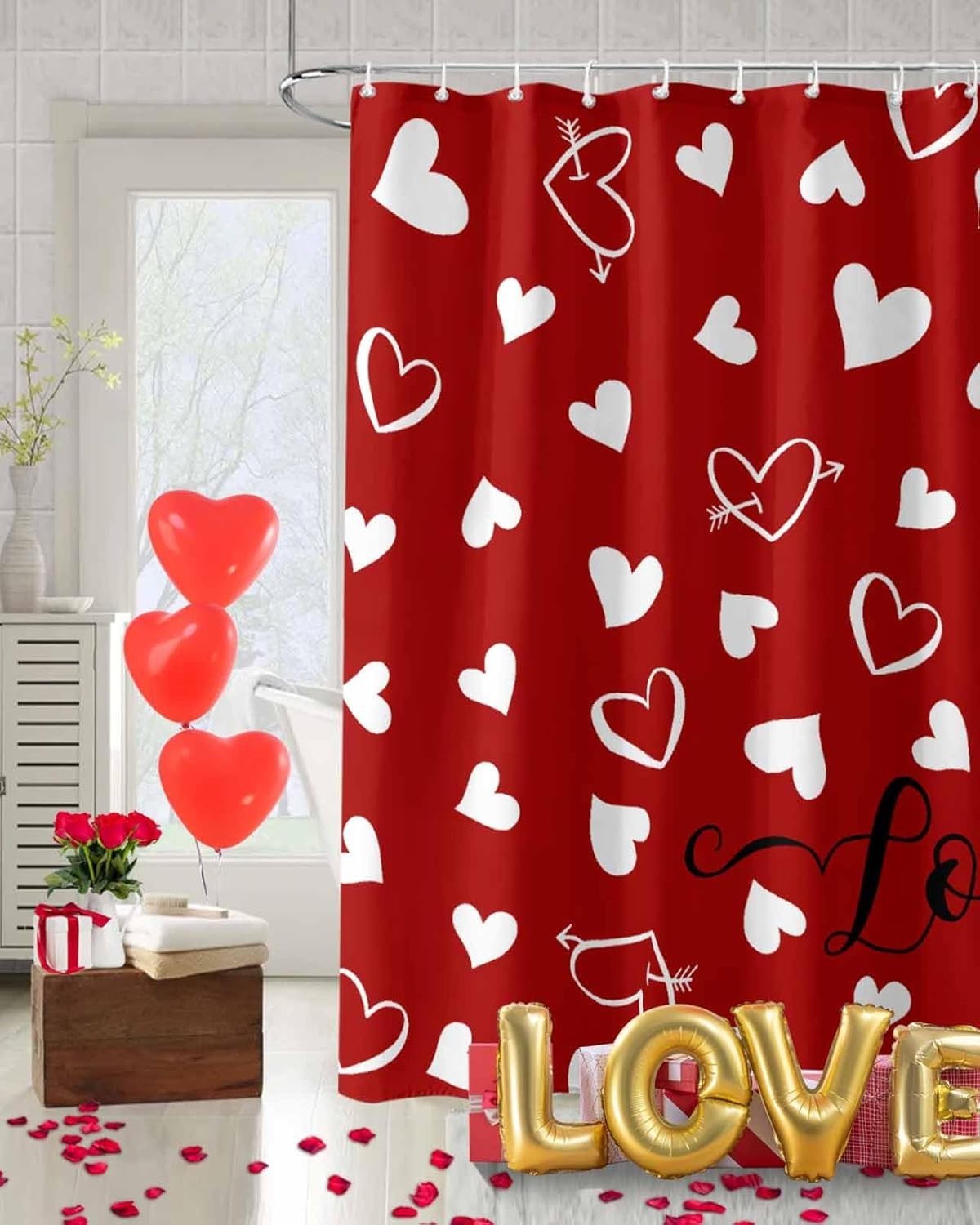 Red Valentine's Day Shower Curtain, Valentines Love Heart Shower Curtains Set...