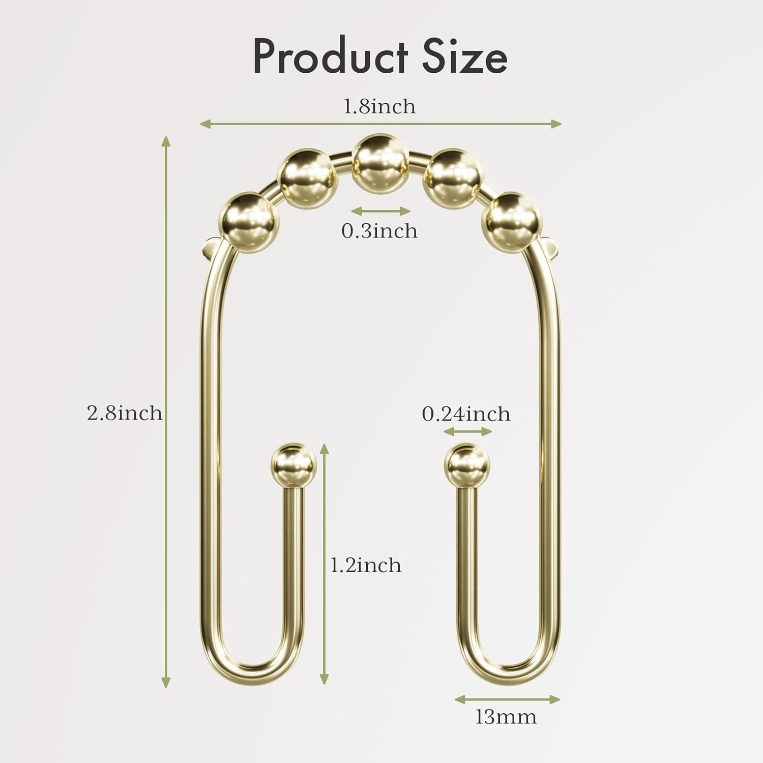 Shower Curtain Hooks Gold Shower Curtain Rings Rust Proof, Double Sided Showe...