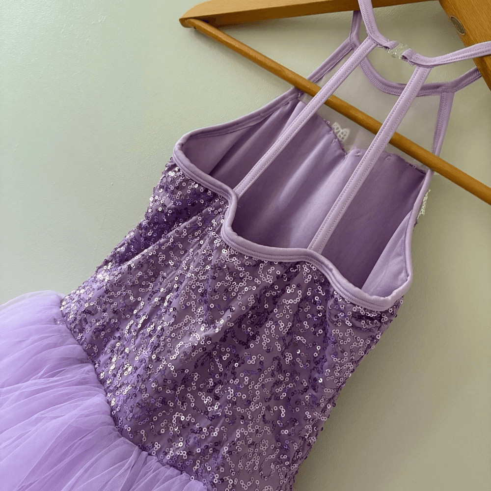 как выглядит Lilac Purple Lavender Ballet Dance Costume Dress E2223 girls L sequins Tier Tutu фото