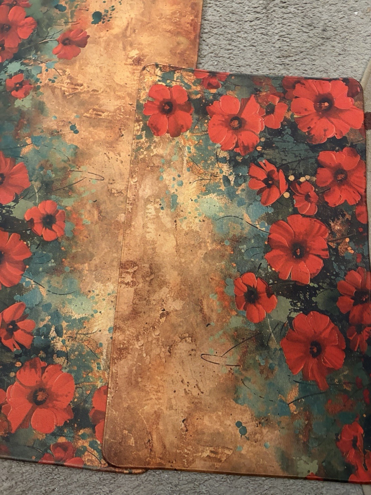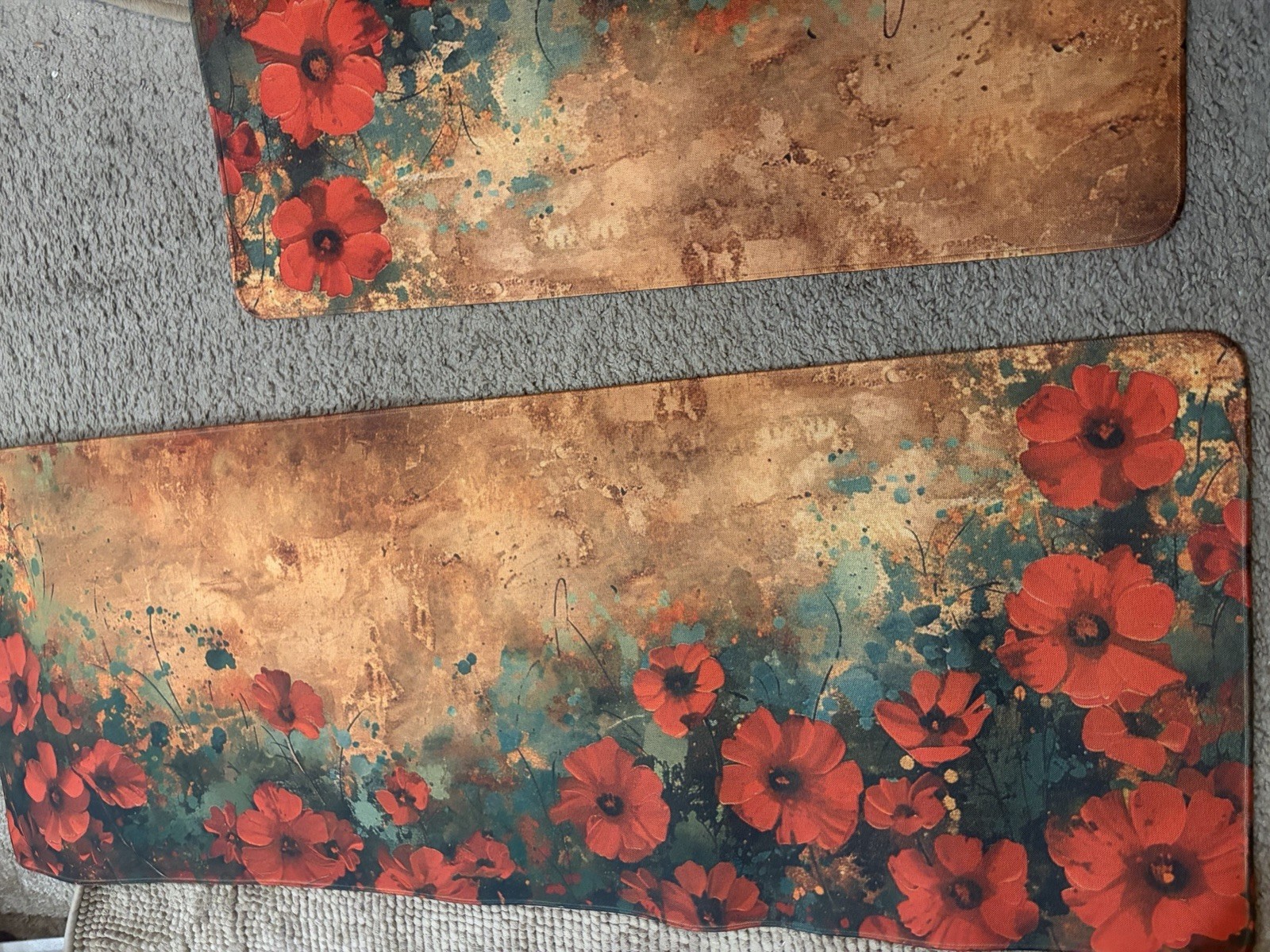 как выглядит Red Poppy Flowers Kitchen Rugs Set of 2 17.7