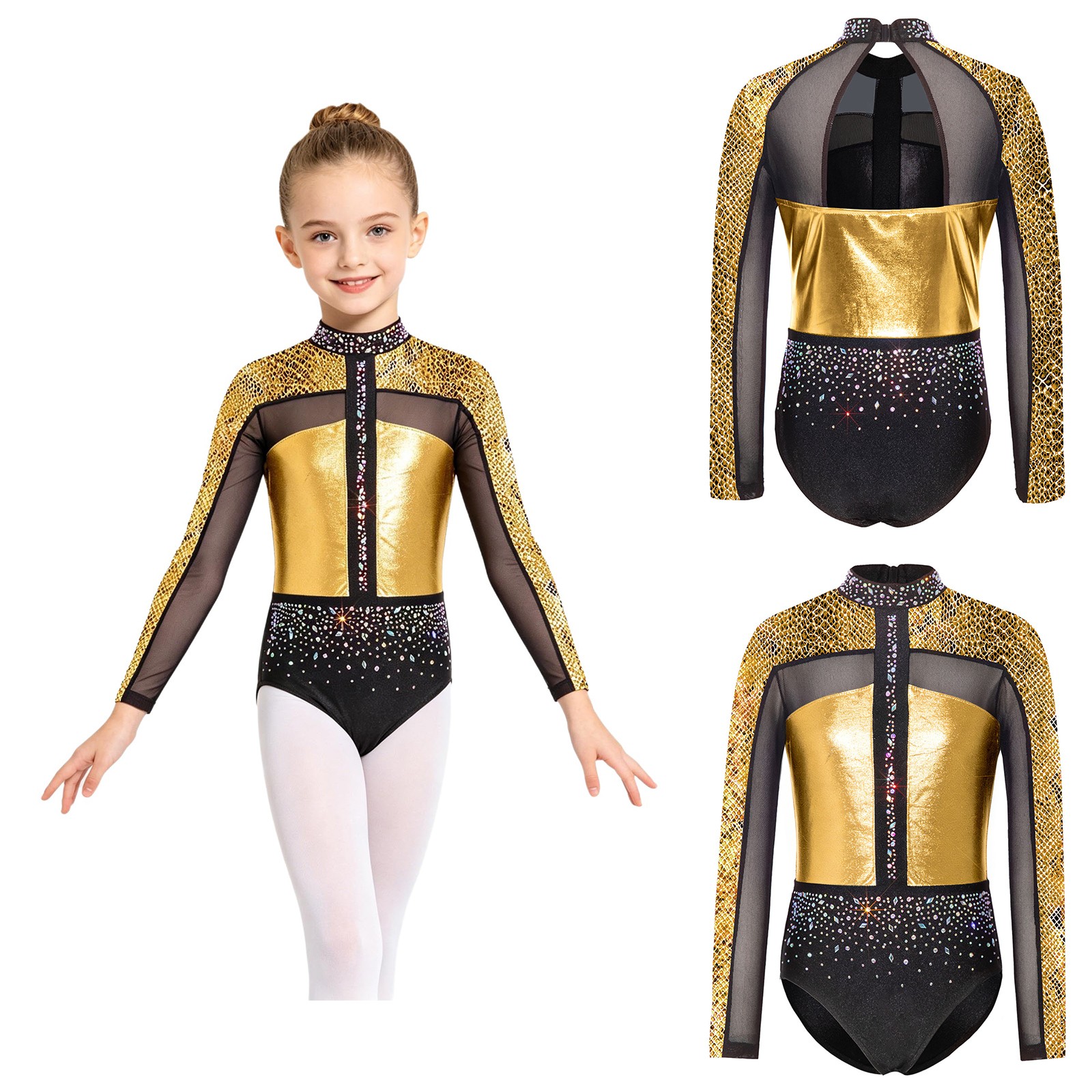 Kids Girls Gymnastics Rave Bodysuit Leotard One Piece Ballroom Exercise Costume