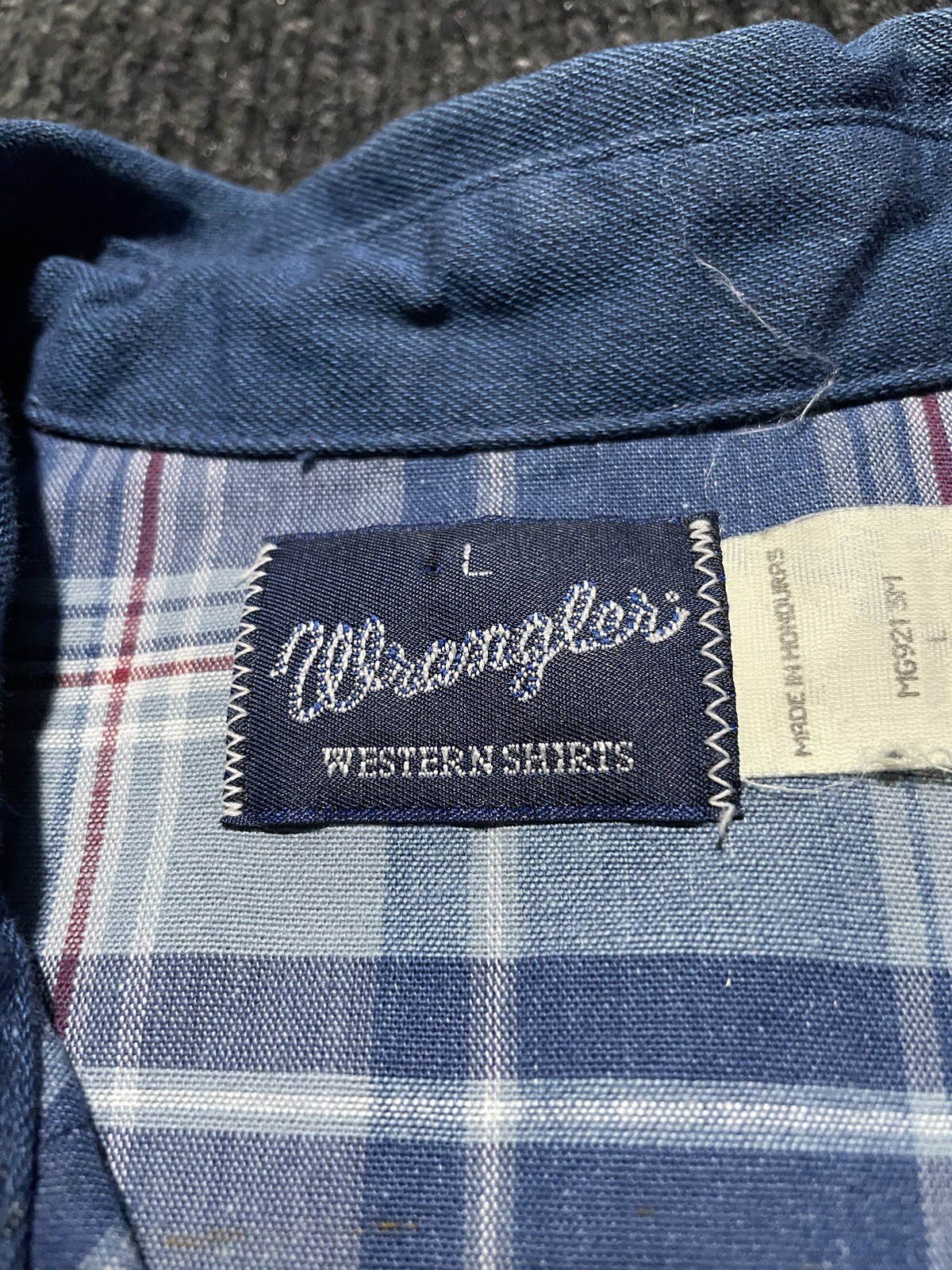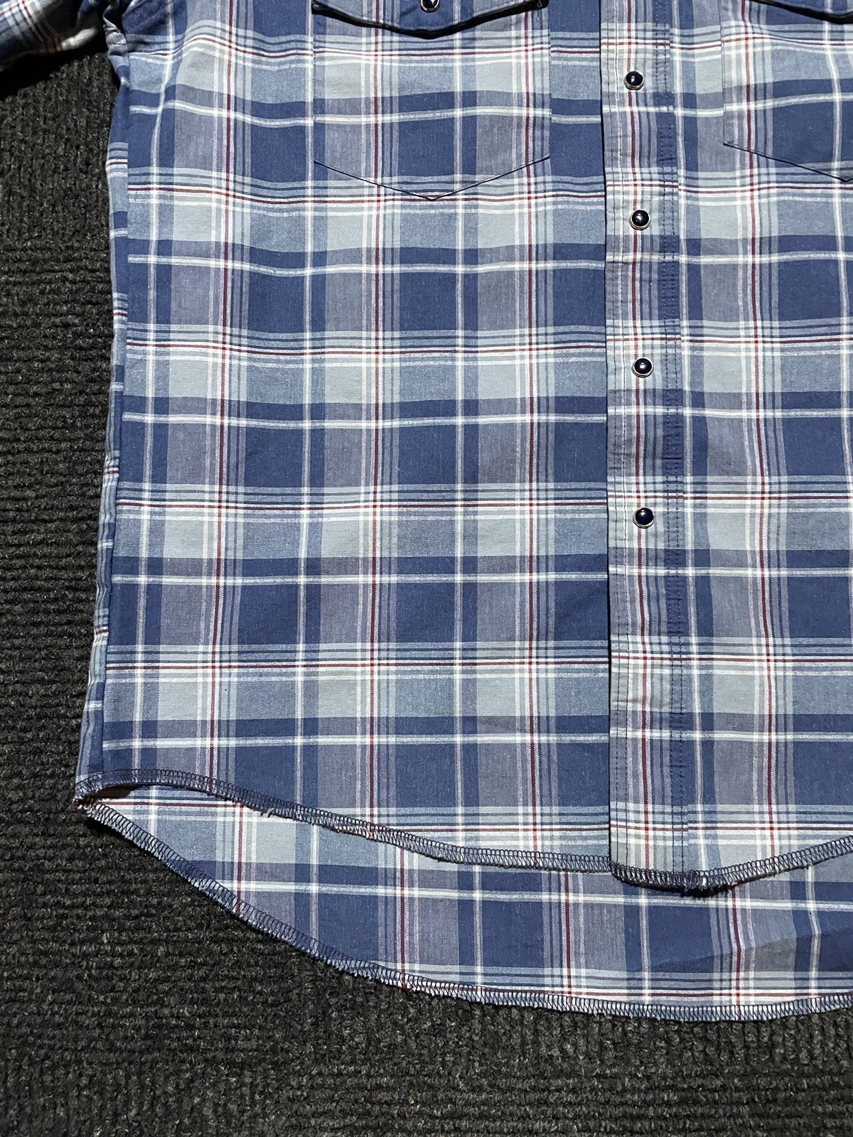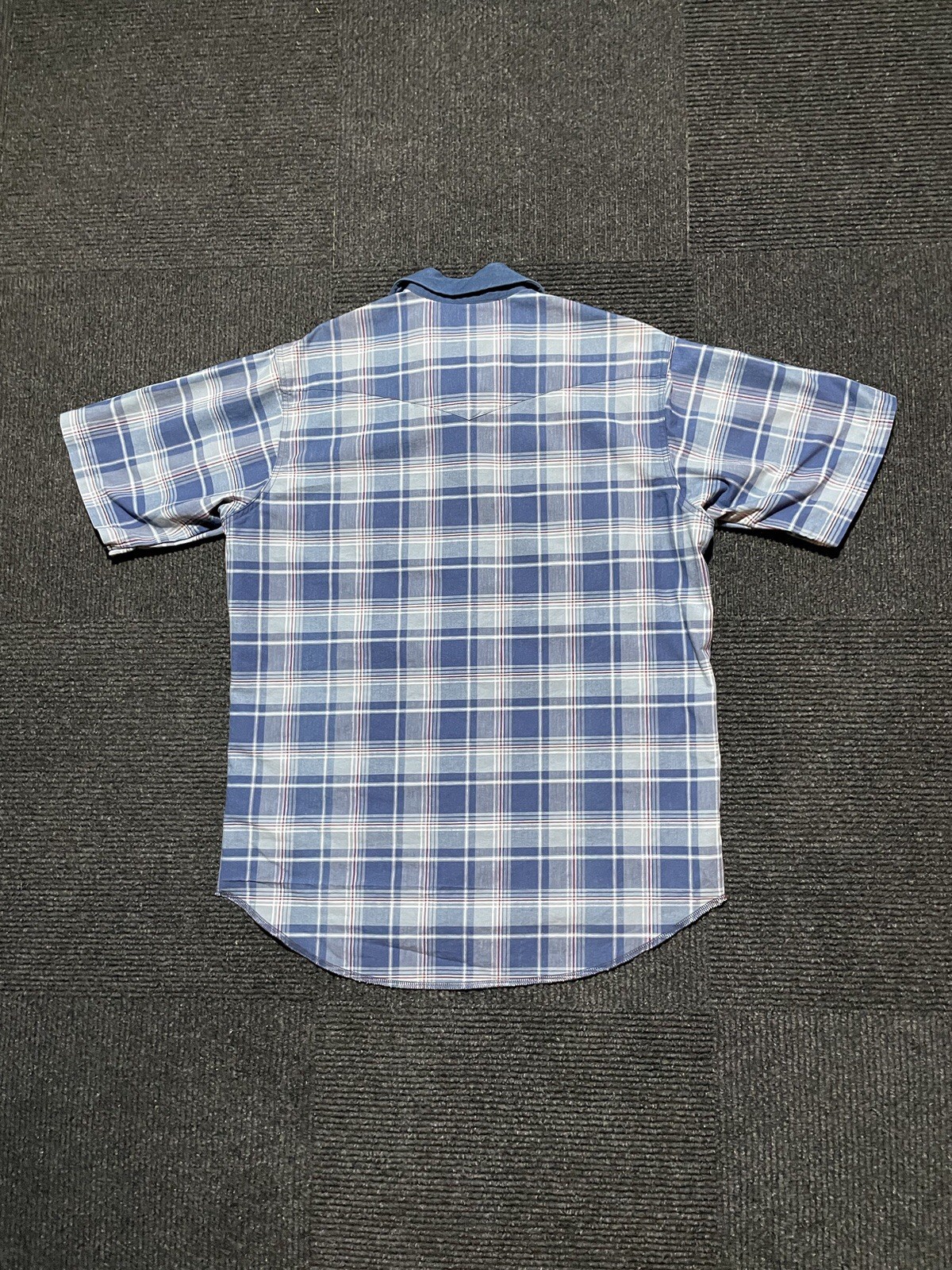как выглядит Vintage 80s Wrangler Blue Plaid Cotton Pearl Snap Western Shirt Size Large фото