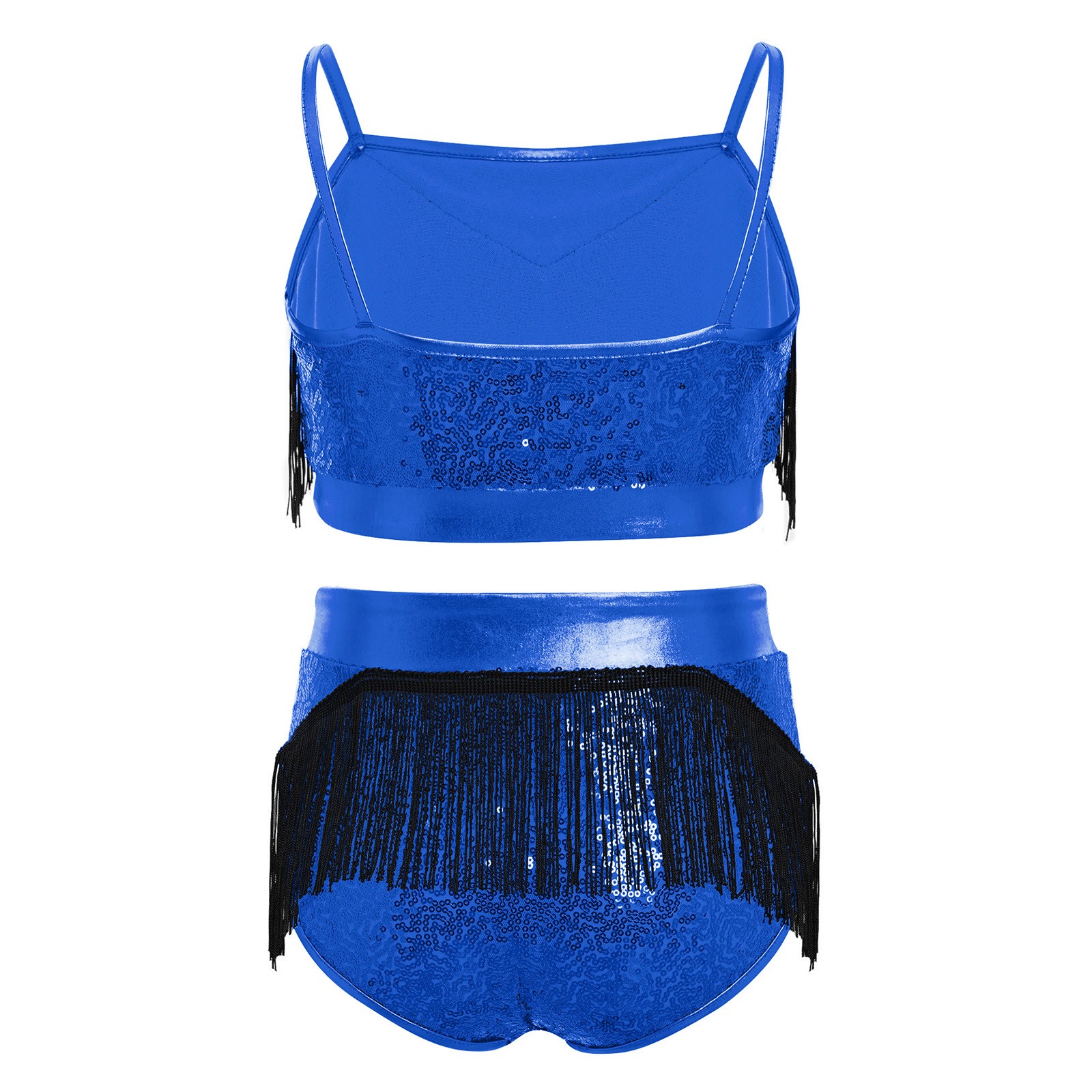Kids Girls Competition Tassel Outfit Back Dancewear Ruched Team Samba Latin