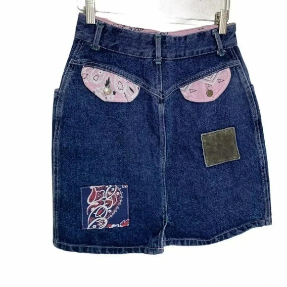 Vintage Guess Georges Marciano Denim Mini Skirt Patchwork Paisley Pink Blue 30