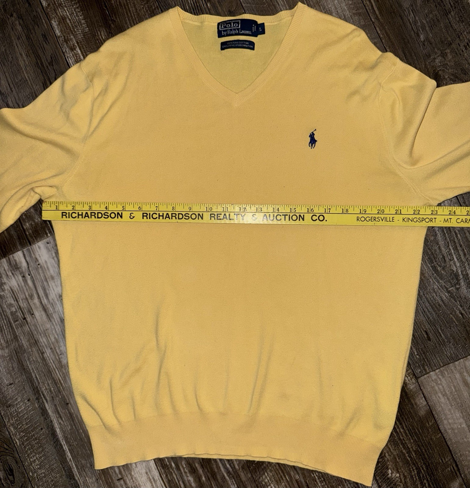 как выглядит Polo Ralph Lauren V-Neck Sweater Mens Large Yellow Pima Cotton Knit фото