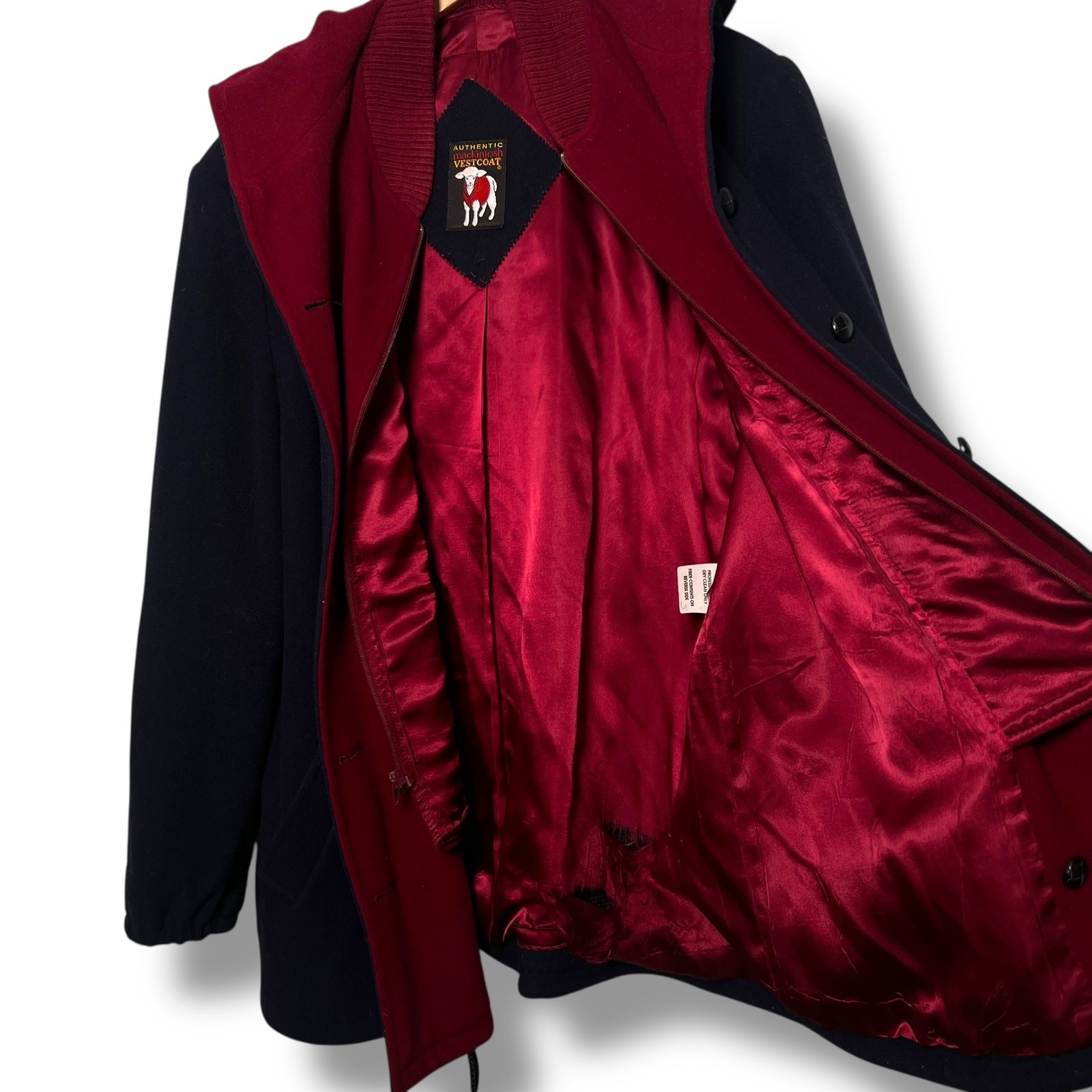 Vintage Mackintosh Size 18 Navy Red Wool Vestcoat Coat 90s Original Jacket