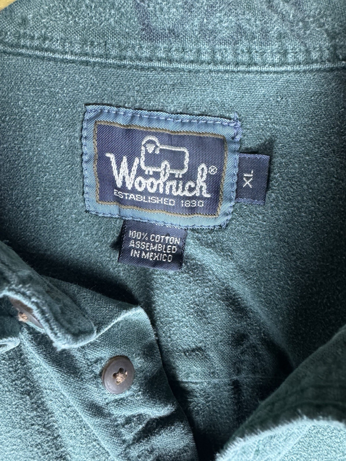 как выглядит VTG 90 s Woolrich Chamois Flannel Button Down Shirt Size XL Arctic Green фото