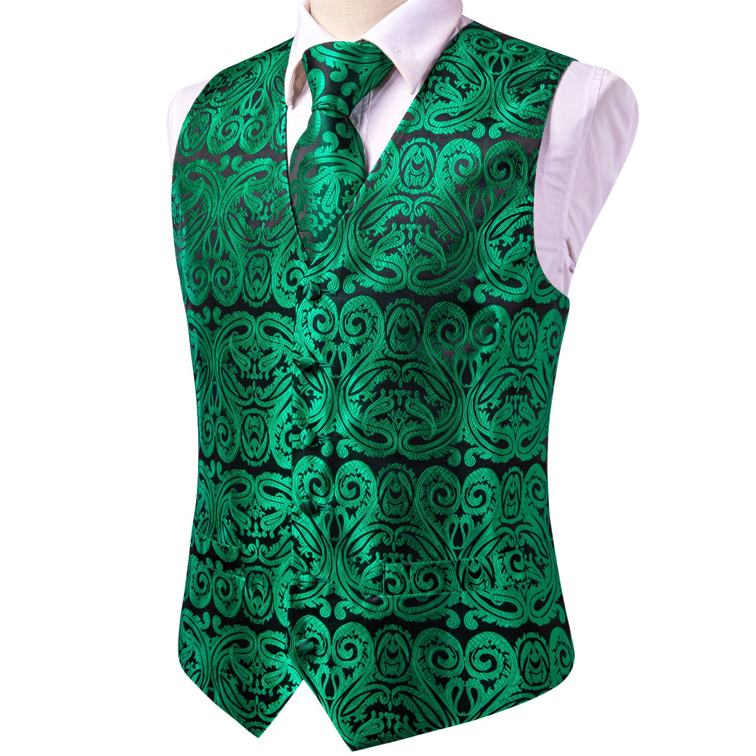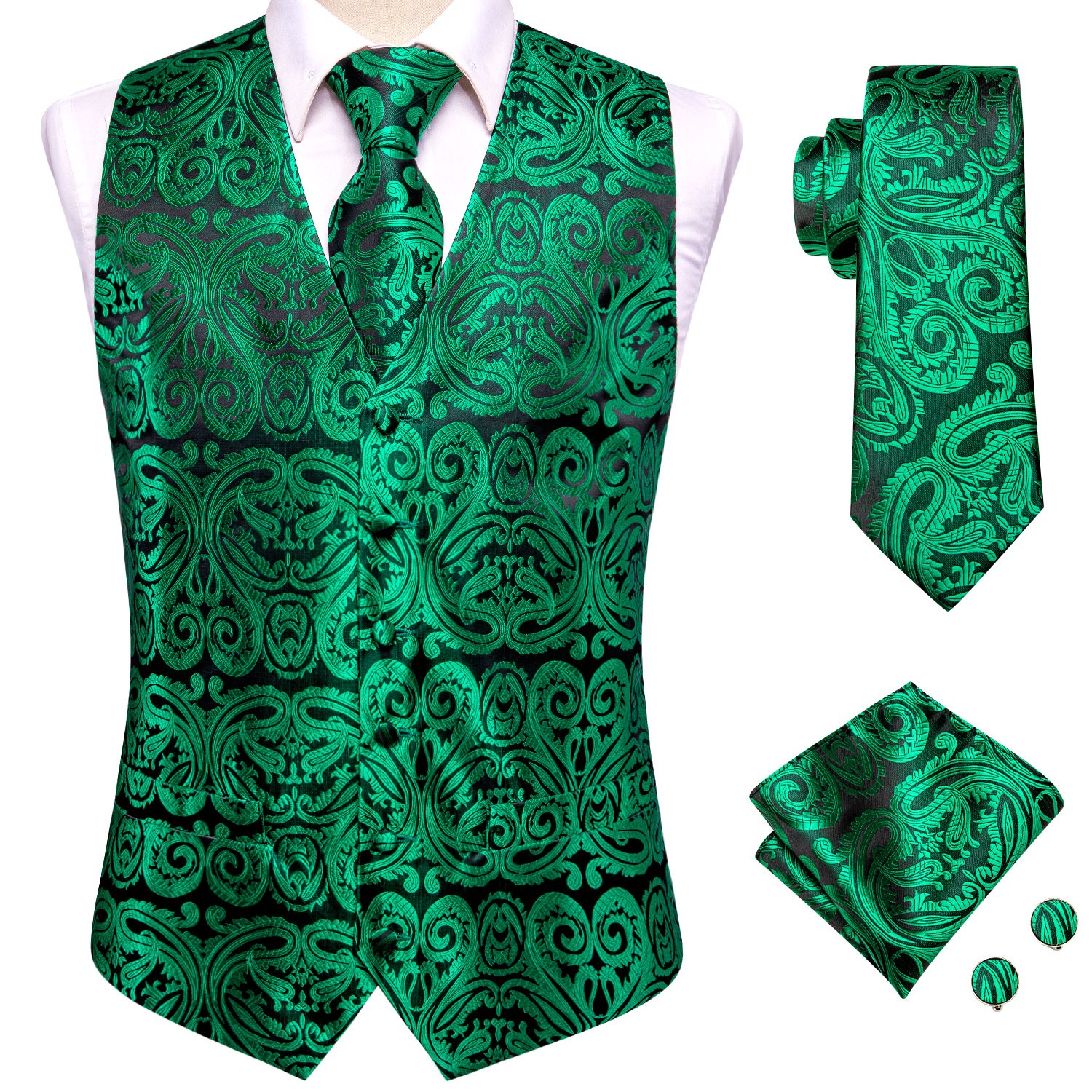 Colour: 0048 Green Paisley(Vest+Tie Set)