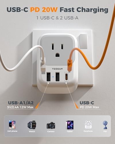 • Travel UK Plug Adapter 2 Pack, Type G US to UK with 4 Outlets 3 USB Charger