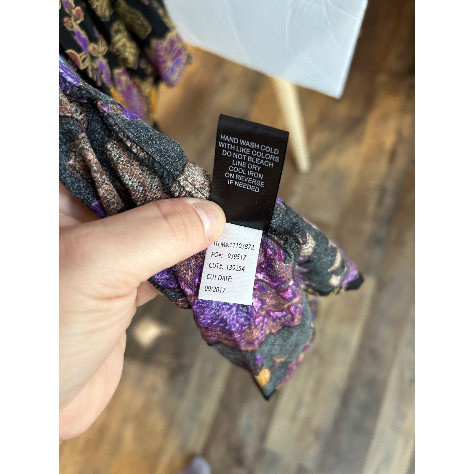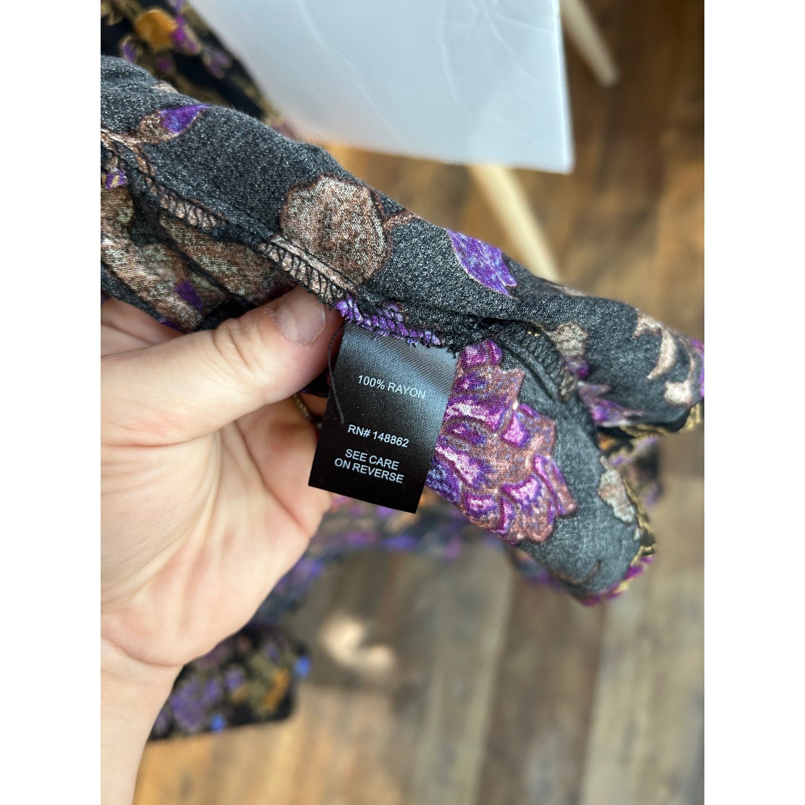как выглядит Torrid Kimono Women 1/2 Black Floral Excellent Gold Metallic Open Front Duster фото