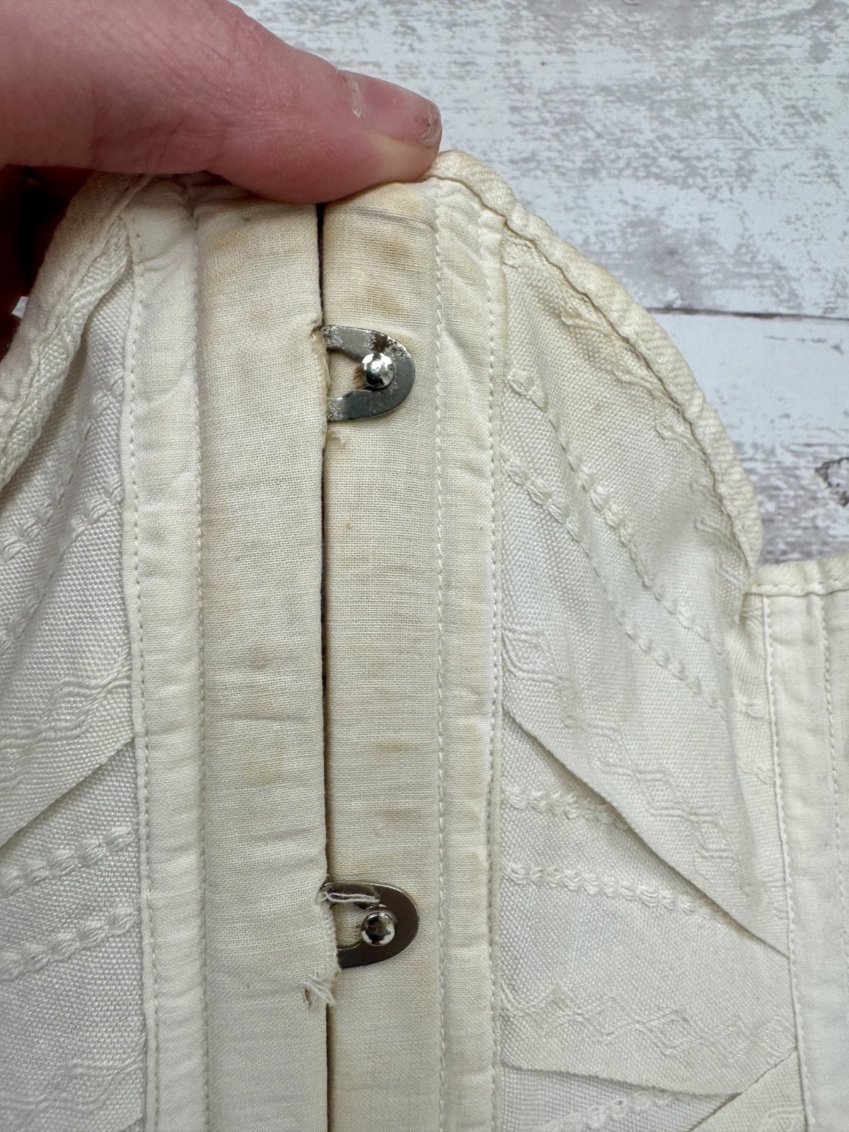 Antique Victorian White Cotton Corset Embroidery Lace Up Boning Hook and Eye