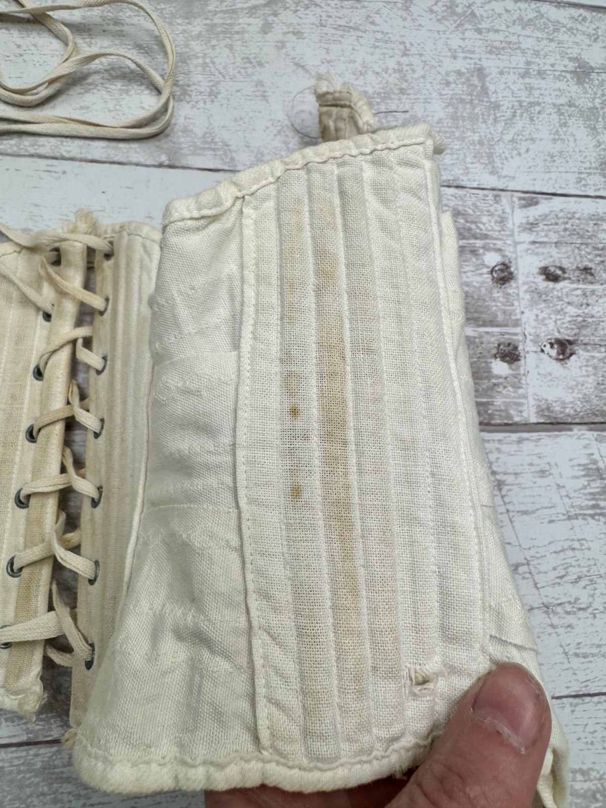 как выглядит Antique Victorian White Cotton Corset Embroidery Lace Up Boning Hook and Eye фото