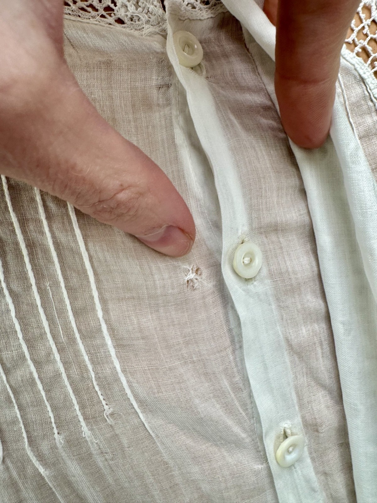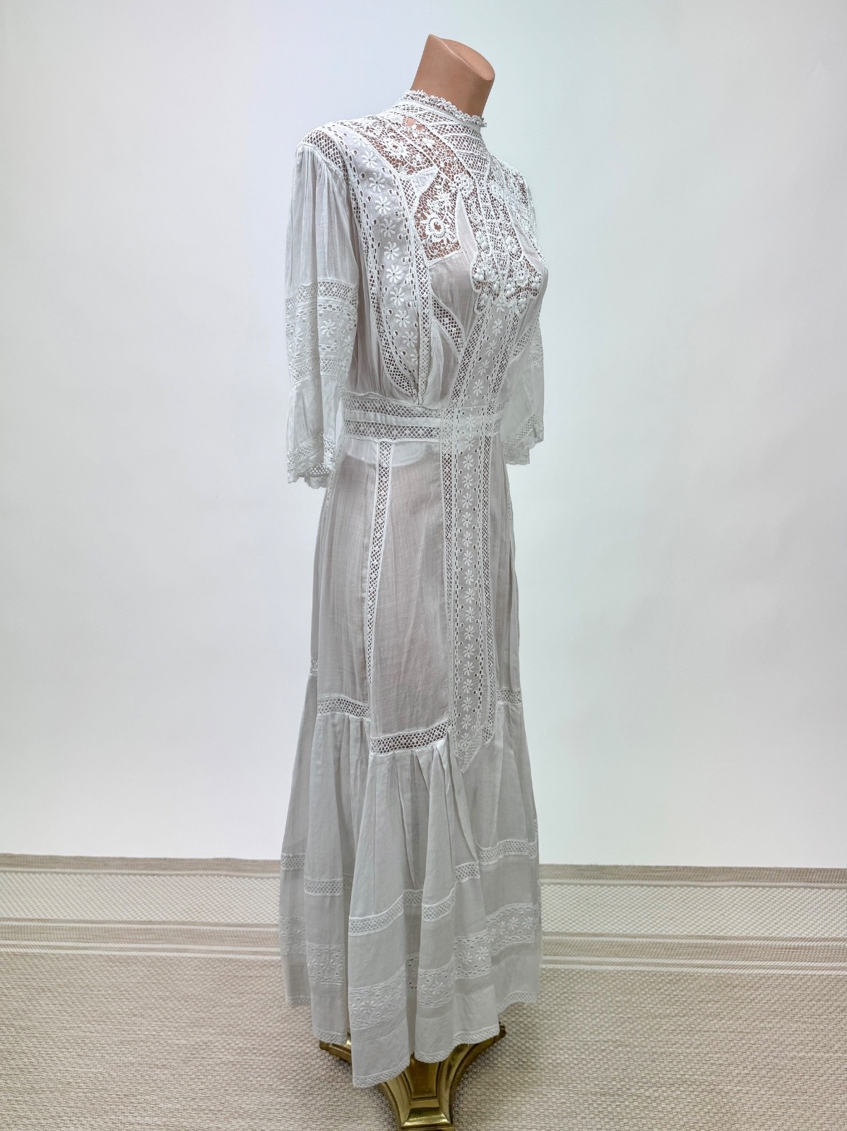 Antique Victorian Edwardian White lace Embroidered Cotton Tea Dress two piece