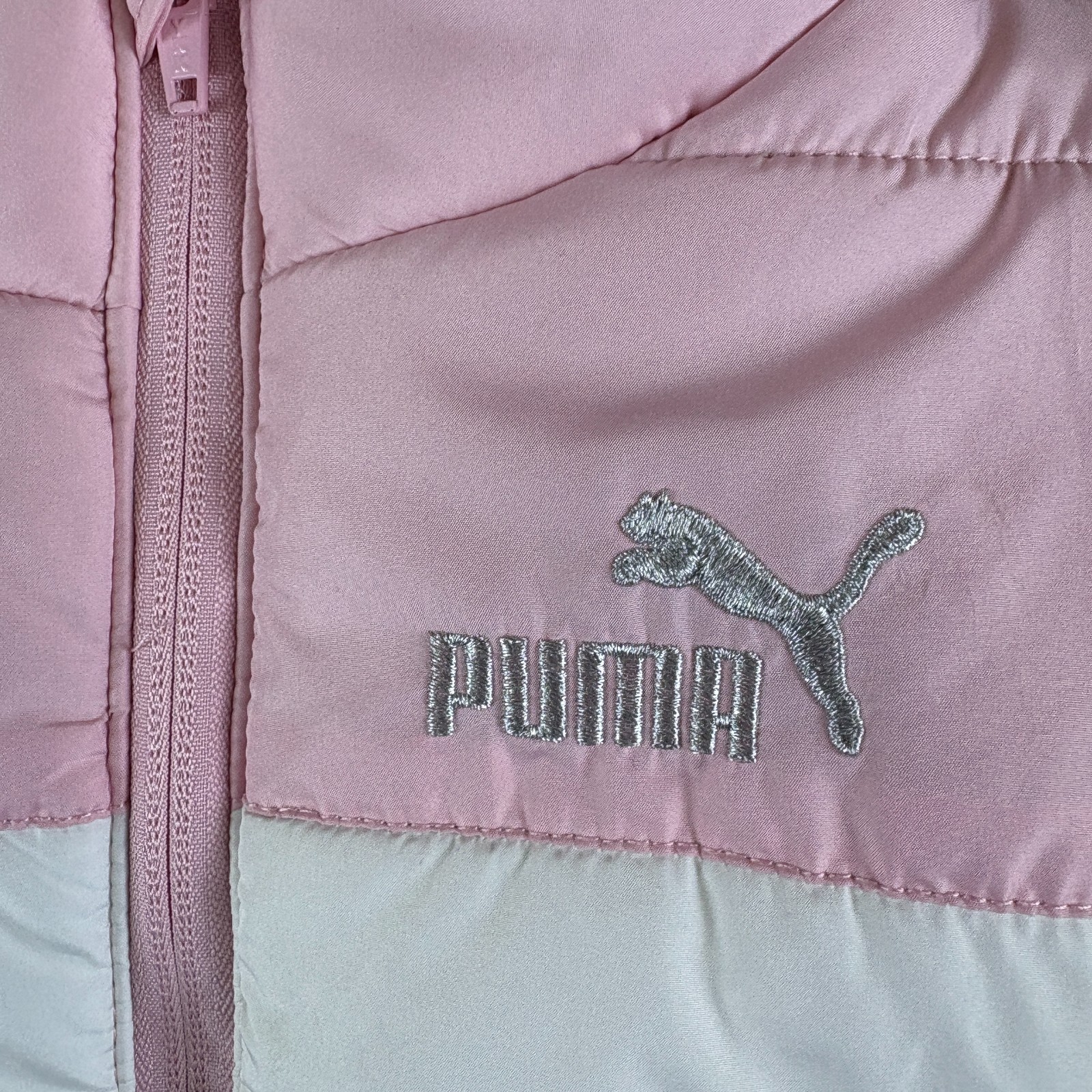 как выглядит Puma Puffer Vest Girls S 7/8 Multi Colorblock Logo Winter Mock Neck Full Zip фото