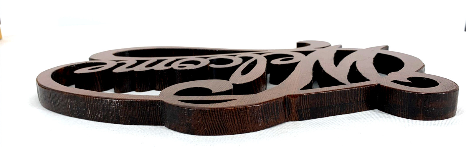 Welcome Sign Cut Wood Script Lettering Brown Wall Decor Handcrafted 13