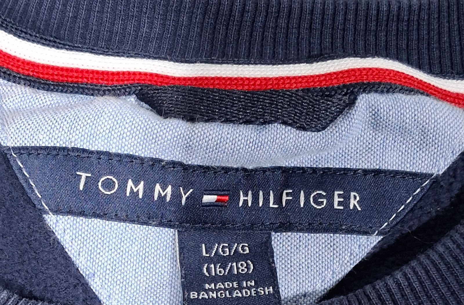 Tommy Hilfiger Boys L 16/18 Henry Fleece Logo Sweatshirt Navy Blue Crewneck